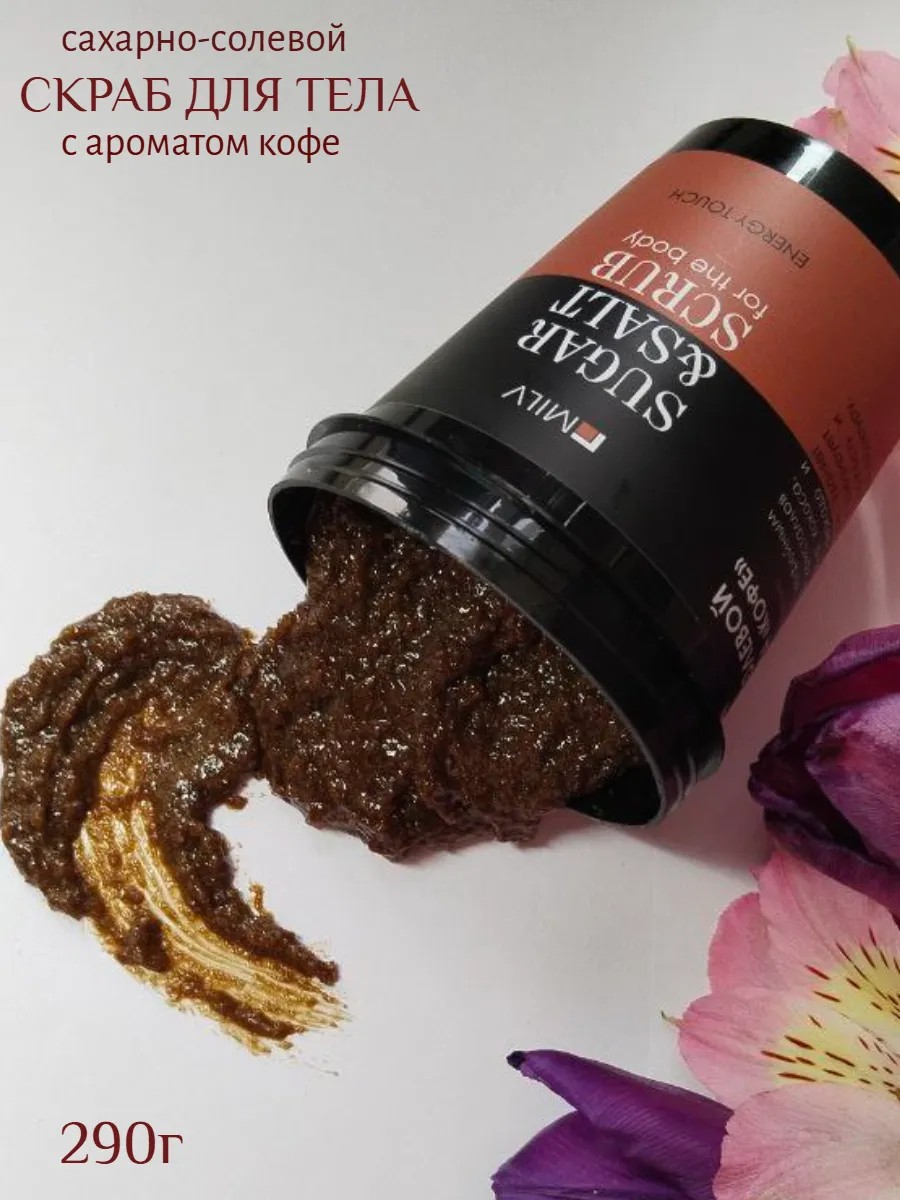 Натуральные ингредиенты: Скраб сочетает в себе мелкие частицы сахара и соли, которые эффективно отшелушивают омертвевшие клетки кожи, а экстракт кофе наполняет вашу кожу жизненной силой. Забудьте о сухости и тусклом цвете — теперь ваша кожа будет сиять здоровьем!