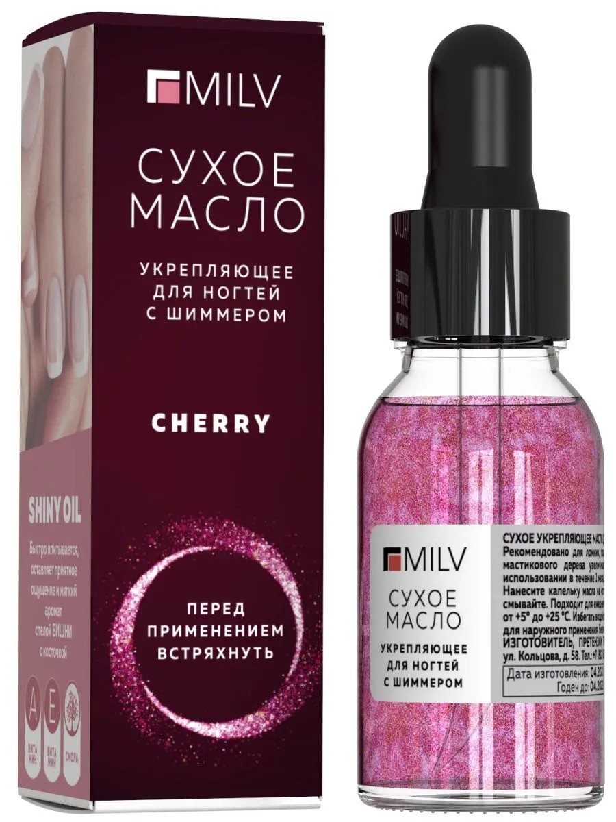 MILV Dry strengthening nail oil with shimmer "Cherry"