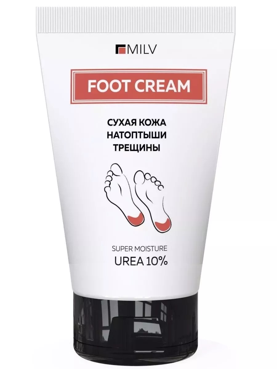 Крем для ног Milv с мочевиной обладает сильным смягчающим и увлажняющим действием. Рекомендуется для ежедневного ухода за сухой и склонной к растрескиванию кожей стоп, в том числе как вспомогательное средство при дерматологических заболеваниях, сопровождающихся сухостью кожи и повышенным образованием ороговелого эпителия. Прекрасно подходит в качестве завершающего этапа педикюра.