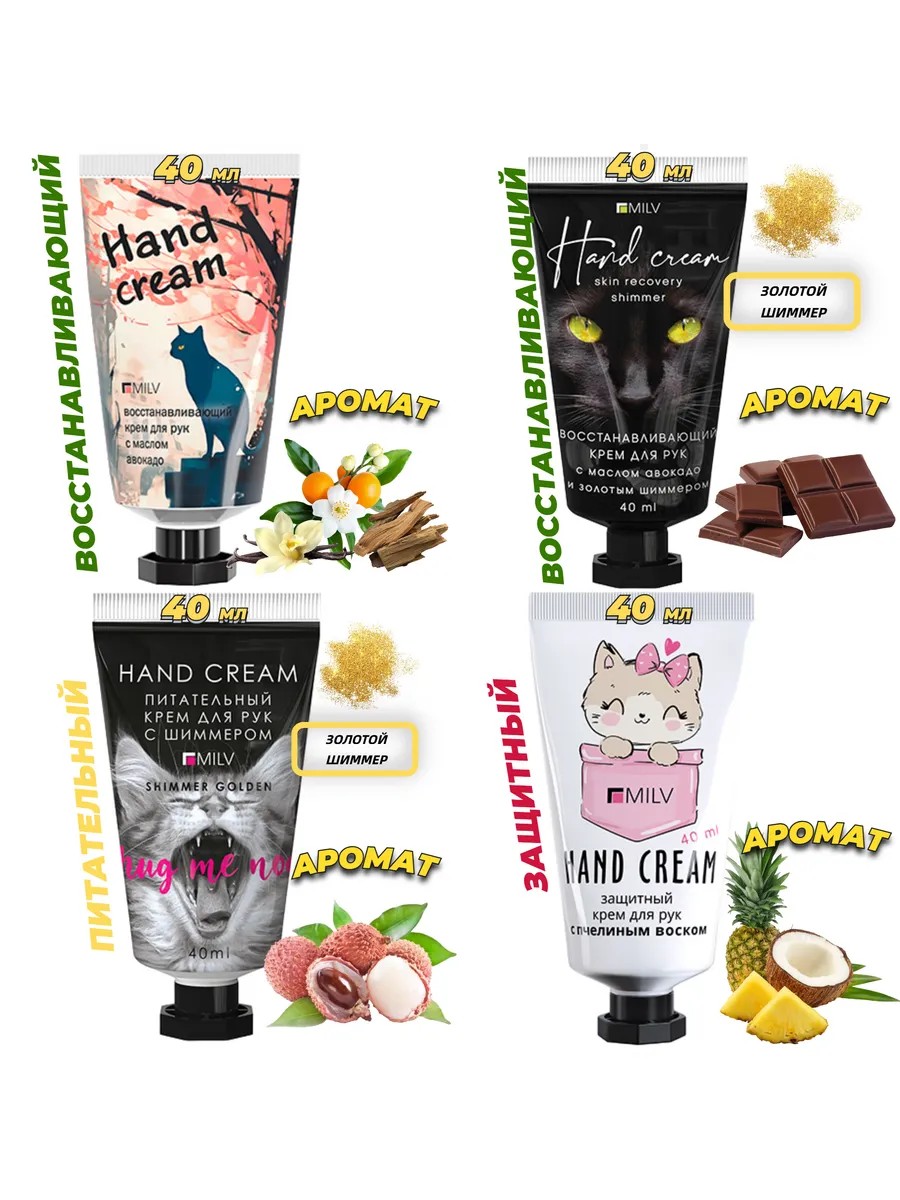 Милый крем для рук набор с котиком. Крем для рук mini набор представляет собой комплексное решение для ухода за кожей рук, объединяя в себе увлажнение, питание, восстановление и защиту. Этот набор идеально подходит для тех, кто ценит качественный уход за руками, особенно в условиях сухого воздуха или при частой работе с водой. Набор включает 4 крема с изображением кошек и котят и разными ароматами. В составе кремов в зависимости от назначения присутствуют увлажняющие компоненты, д-пантенол, мочевина, живица, масло кокоса, масло ши, витамин Е, масло авокадо. Косметическая основа обеспечивает мягкость и гладкость кожи, а также способствует восстановлению естественного барьера защиты. Благодаря уникальной формуле, крем быстро впитывается, не оставляя жирного ощущения на коже, и предоставляет долгосрочную защиту от внешних воздействий. Этот набор является отличным выбором для тех, кто стремится поддерживать руки в идеальном состоянии, делая их мягкими и ухоженными. Набор полюбился всем любителям кошек и котят за очень милые принты на тубах.
