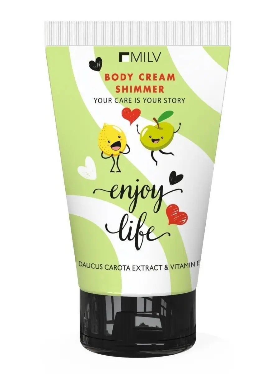 Лимитированная коллекция кремов с ароматом жевательной резинки. Увлажняющий крем для тела с шиммером "Enjoy life" с ароматом " Яблоко-лимон" быстро распределяется, оставляя на коже деликатный сияющий блеск и яркий фруктовой аромат.