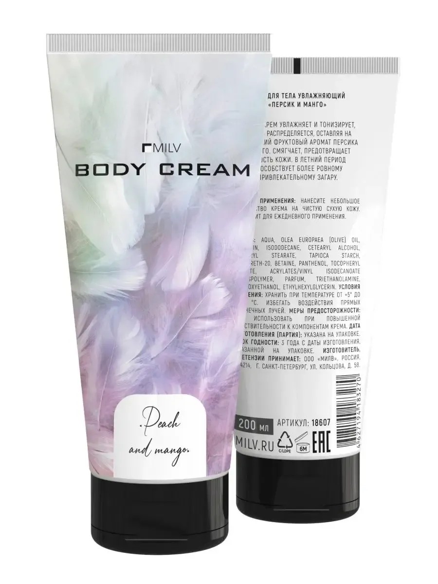 Package contentsMoisturizing body cream "PEACH and MANGO". 200 ml
