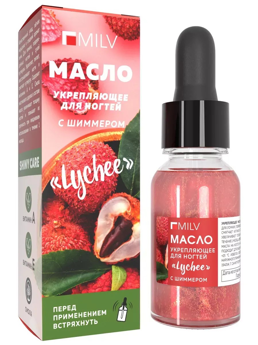 | Комплектация | Масло для ногтей и кутикулы укрепляющее с шиммером "LYCHEE" с пипеткой - 1 шт |