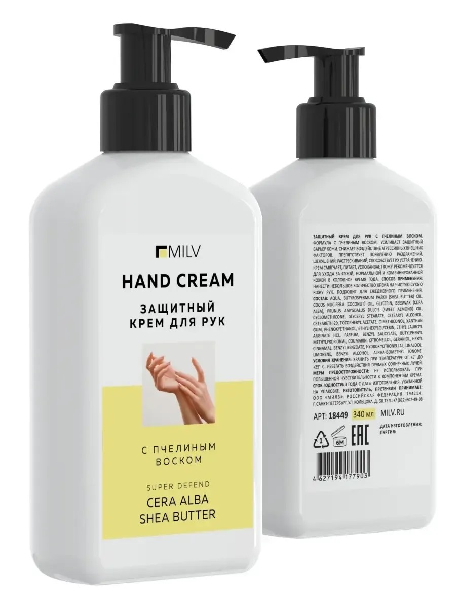 | Комплектация | Защитный крем для рук с пчелиным воском. 340 мл |