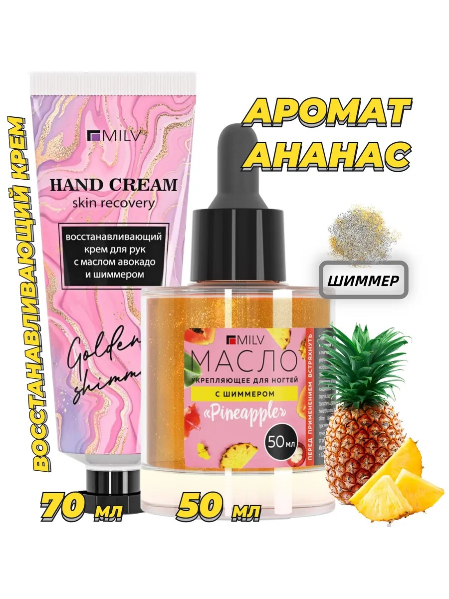 Масло для кутикулы с шиммером 50 мл ананас. Подарите своим рукам заботу и внимание с восстанавливающим кремом для рук milv с глицерином и укрепляющим маслом для ногтей c шиммером. Увлажняющий состав активно борется с сухостью, обеспечивая увлажнение, глубокое питание и восстановление как кожи, так и кутикулы и ногтей.