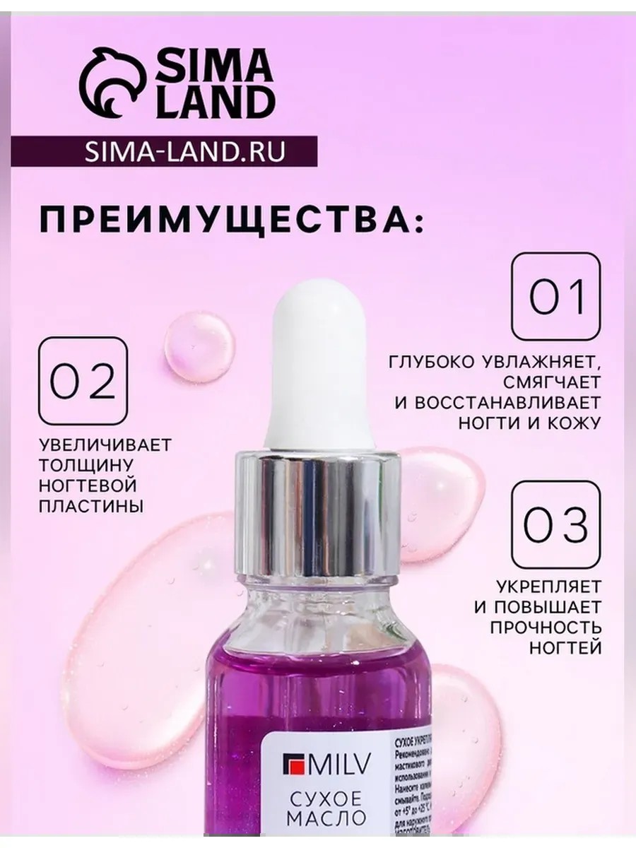 | Полное наименование товара | Сухое укрепляющее масло для ногтей Milv Marshmallow |