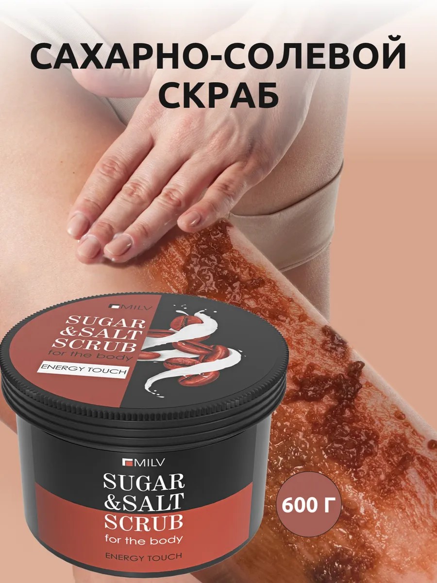 Скраб с ароматом кофе на основе кристаллов сахара и соли, комплекса масел и экстракта зелёного кофе. Антицеллюлитный сахарно-солевой скраб борется не только с эффектом апельсиновой корки, он также является отличным средством для похудения. Помогает вывести токсины, активирует обменные процессы. Сахар делает процедуру очищения более щадящей и бережной. Кожа становится более эластичной и упругой. В свою очередь соль обладает антисептическим свойством, что препятствует развитию бактерий. Солевой скраб помогает снять мышечный тонус, что способствует дальнейшему снятию напряжения. Сахарно-солевой скраб также помогает в борьбе с растяжками. Регулярное использование сахарно-солевого скраба поможет с легкостью от них избавиться. Постоянное использование сахарно-солевого скраба в домашних условиях, может заменить ряд салонных процедур: горячие обертывания для похудения, антицеллюлитные банки. Сахарно-солевой скраб можно использовать до нанесения автозагара, чтобы лучше очистить кожу, избавить ее от мертвых клеток и закупоренных пор. После использования скраба на кожу загар ложится ровнее и лучше. Сахарный скраб для тела является универсальным средством в борьбе с целлюлитом. Обеспечивает глубокое очищение. Обладает эффектом легкого массажа. Чтобы сохранить красоту и здоровье кожи, данный продукт должен быть в арсенале у каждой девушки. Удаляет шелушения, устраняет избыточную жирность, смягчает и тонизирует кожу, улучшает её упругость и эластичность, выравнивает структуру. Экстракт зелёного кофе тонизирует, способствует более активному проникновению питательных компонентов, масло кокоса, масло ши, масло авокадо питают и успокаивают. Способ применения: перемешайте скраб перед применением. Нанесите на влажную кожу круговыми массирующими движениями. Смойте водой остатки скраба. Не наносить на повреждённую и раздражённую кожу!