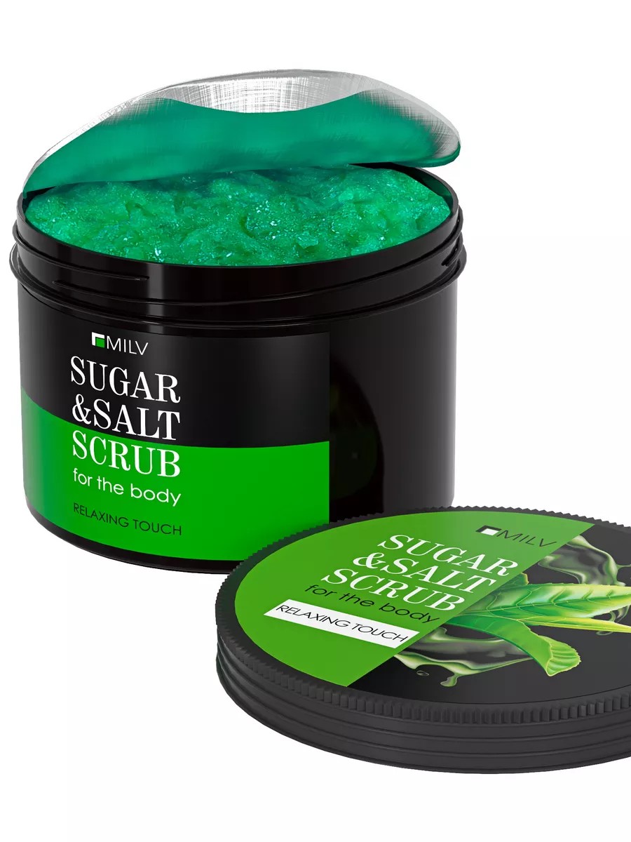 Сахарно-солевой скраб для тела "ЗЕЛЁНЫЙ ЧАЙ". 600 г