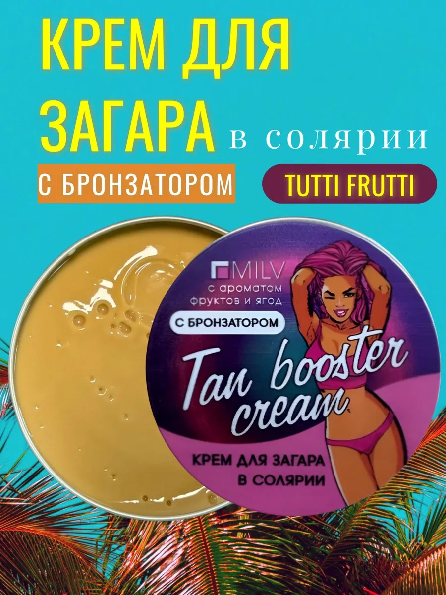 MILV's "Tutti Frutti" bronzer tanning cream is an effective tanning enhancer designed for use before a tanning session. This cream is ideal for those seeking a natural, deep skin tone. Its special formula moisturizes and nourishes the skin. This fruity-berry scented cream is suitable for all skin types, making it a universal choice for tanning enthusiasts. Apply the cream 5-20 minutes before your session to maximize your tanning results.