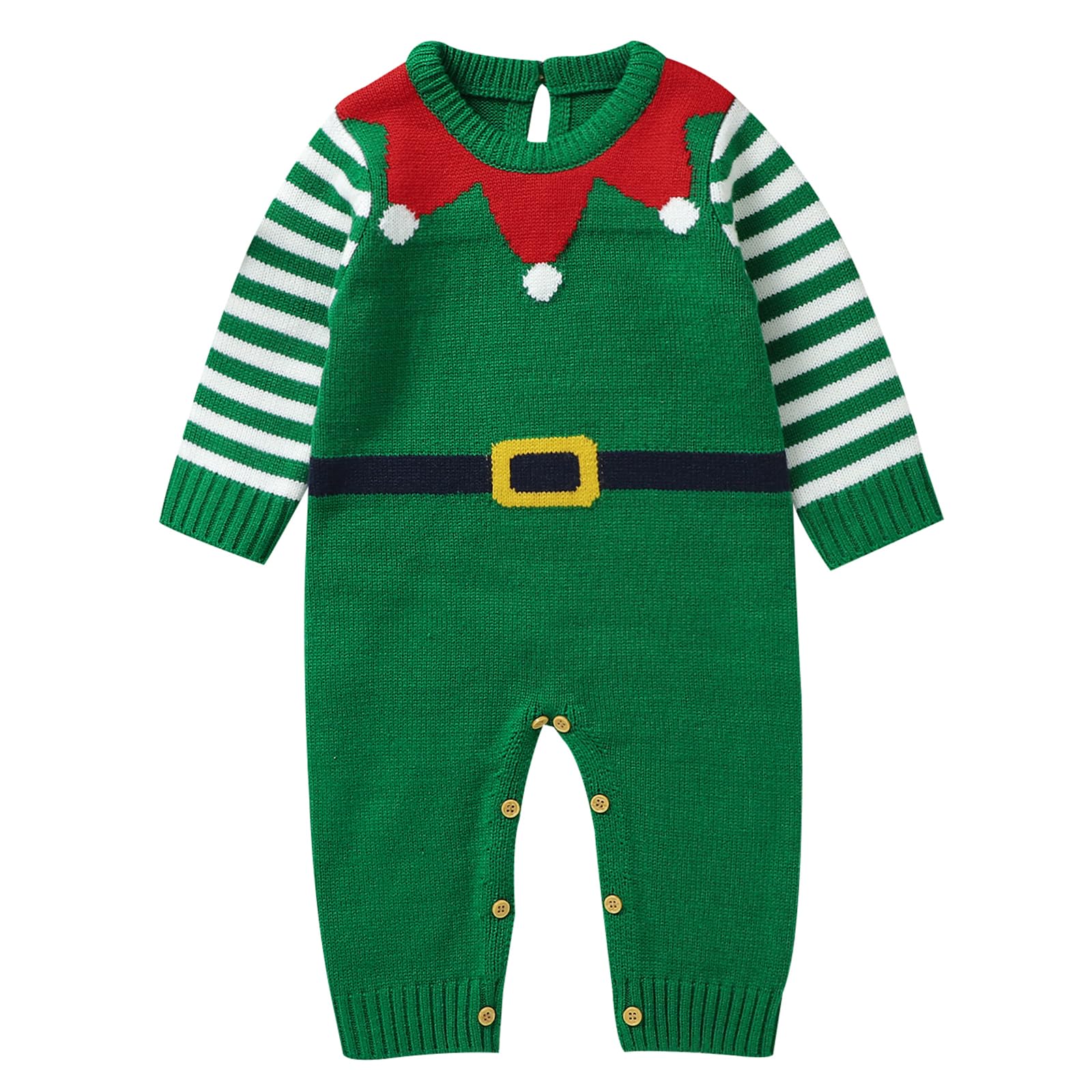 mimixiong Baby Christmas Outfits Knitted Baby Christmas Costumes Long Sleeve Newborn Boys Girls Xmas Romper 6-9 Months Green