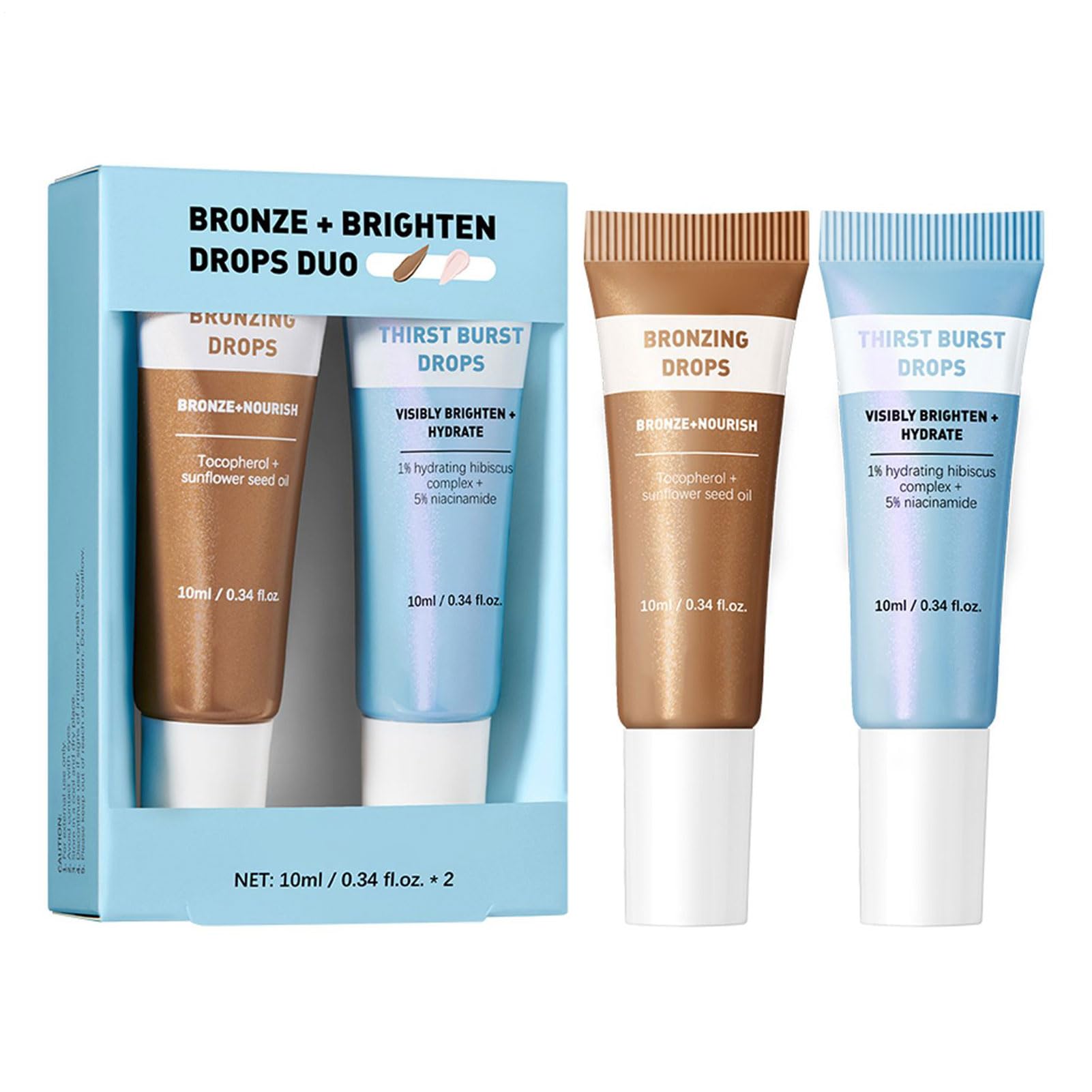 DESCRIPTION DU PRODUIT DESCRIPTION DU PRODUIT Create a radiant, sun-kissed look any time of year with this set of Bronzing Drops, designed to deliver a luminous, gradual tan while moisturizing your skin. Each 10ml bottle is packed with lightweight, hydrating ingredients that leave your skin feeling and glowing. Perfect for legs, arms, face, and body, these drops can be used alone for a natural highlight or mixed with your favorite lotions for a customized bronze effect. Whether you're preparing for a night out, enhancing your daily glow, or traveling, these compact drops offer effortless application and quick-drying results. Achieve a natural, buildable tan and a healthy glow wherever you go with this beauty staple. Product name: bronzing drops Net weight: 10ml Gross weight: 37g Features: Bronze, nourishing, significantly brightening, moisturizing list: bronzing drops 1 set(2 pieces) Notes: 1. Due to the lighting effects and photographing angles, there is a color difference in the product, please understand. 2. Due to manual measurement, there is a tolerance in the product size. AVERTISSEMENT DE SÉCURITÉ N'est pas applicableIdeal for Daily Professional Use: Suitable for home beauty routines and professional salon settings these bronzing drops provide an easy quick way to makeup looks highlight legs or create an overall healthy-looking complexion. Compact Travel-Friendly: Each set includes two 10ml bottles that are lightweight and portable making them perfect for travel vacations beach trips and on-the-go touch-ups ensuring you can maintain a radiant glow anytime anywhere. Versatile Application: Mix these bronzing drops with your favorite moisturizer foundation or body lotion for a customizable glow allowing you to adjust the intensity and achieve a flawless bronzed look tailored to your personal style. Moisturizing Skin-Nourishing: Formulated with hydrating ingredients these bronzy drops double as a moisturizing lotion cream helping to keep skin soft smooth and glowing while gradually building a beautiful tan without dryness or streaks. Radiant Bronzing Glow: These bronzing drops deliver a natural sun-kissed radiance that enhances your complexion with a luminous finish perfect for daily use on face legs or body whether at home in the salon or preparing for special events.Bronzing Drops, Set of 2 Bronzy Glow Enhancers 37g, 10ml Radiant Gradual Tanning Moisturizer, Lightweight Lotion Cream Highlighter for Legs, Face, Daily Use, 10mlDESCRIPTION DU PRODUIT DESCRIPTION DU PRODUIT Create a radiant, sun-kissed look any time of year with this set of Bronzing Drops, designed to deliver a luminous, gradual tan while moisturizing your skin. Each 10ml bottle is packed with lightweight, hydrating ingredients that leave your skin feeling and glowing. Perfect for legs, arms, face, and body, these drops can be used alone for a natural highlight or mixed with your favorite lotions for a customized bronze effect. Whether you're preparing for a night out, enhancing your daily glow, or traveling, these compact drops offer effortless application and quick-drying results. Achieve a natural, buildable tan and a healthy glow wherever you go with this beauty staple. Product name: bronzing drops Net weight: 10ml Gross weight: 37g Features: Bronze, nourishing, significantly brightening, moisturizing list: bronzing drops 1 set(2 pieces) Notes: 1. Due to the lighting effects and photographing angles, there is a color difference in the product, please understand. 2. Due to manual measurement, there is a tolerance in the product size. AVERTISSEMENT DE SÉCURITÉ N'est pas applicableIdeal for Daily Professional Use: Suitable for home beauty routines and professional salon settings these bronzing drops provide an easy quick way to makeup looks highlight legs or create an overall healthy-looking complexion. Compact Travel-Friendly: Each set includes two 10ml bottles that are lightweight and portable making them perfect for travel vacations beach trips and on-the-go touch-ups ensuring you can maintain a radiant glow anytime anywhere. Versatile Application: Mix these bronzing drops with your favorite moisturizer foundation or body lotion for a customizable glow allowing you to adjust the intensity and achieve a flawless bronzed look tailored to your personal style. Moisturizing Skin-Nourishing: Formulated with hydrating ingredients these bronzy drops double as a moisturizing lotion cream helping to keep skin soft smooth and glowing while gradually building a beautiful tan without dryness or streaks. Radiant Bronzing Glow: These bronzing drops deliver a natural sun-kissed radiance that enhances your complexion with a luminous finish perfect for daily use on face legs or body whether at home in the salon or preparing for special events.