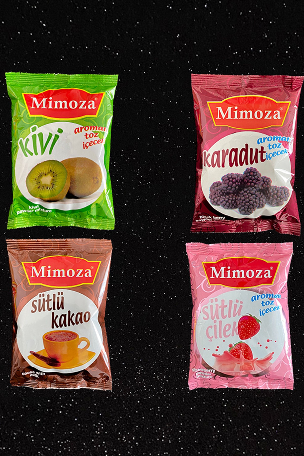 Mimosa Flu Tea Kiwi Black Mulberry Milk Cocoa and Strawberry Flavored Hot Milk Shake Winter and Cafe Tea Pack of 4 900 Gr.