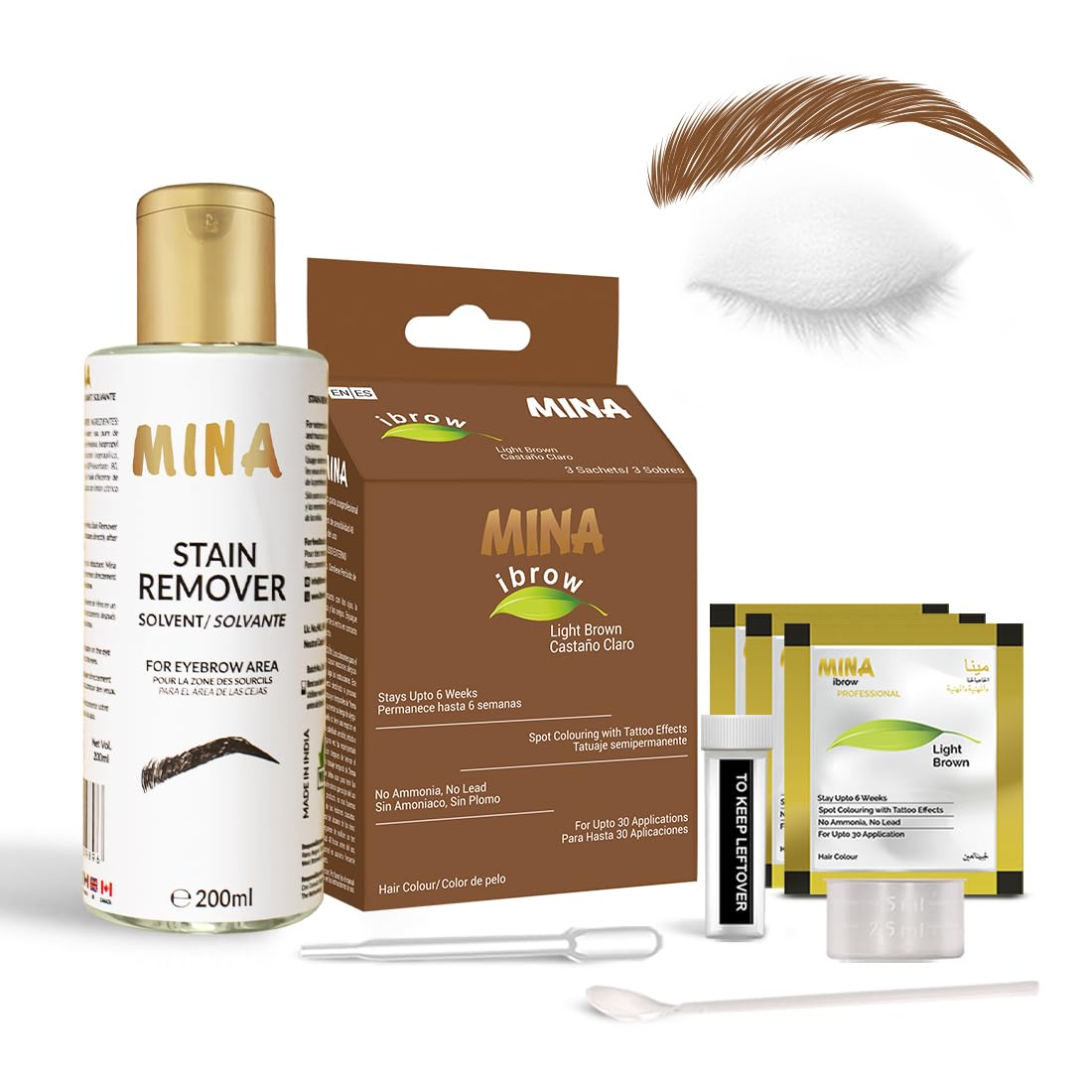 Mina ibrow Poudre colorante pour cheveux marron clair - Longue durée - Avec dissolvant de taches - Élimine doucement la couleur de la peau, de l'eau et des salissures - Jusqu'à 30 applications