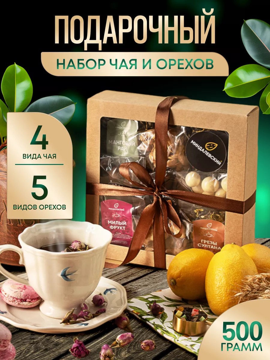 Миндалевский Набор чая и орехов подарочный, ассорти
