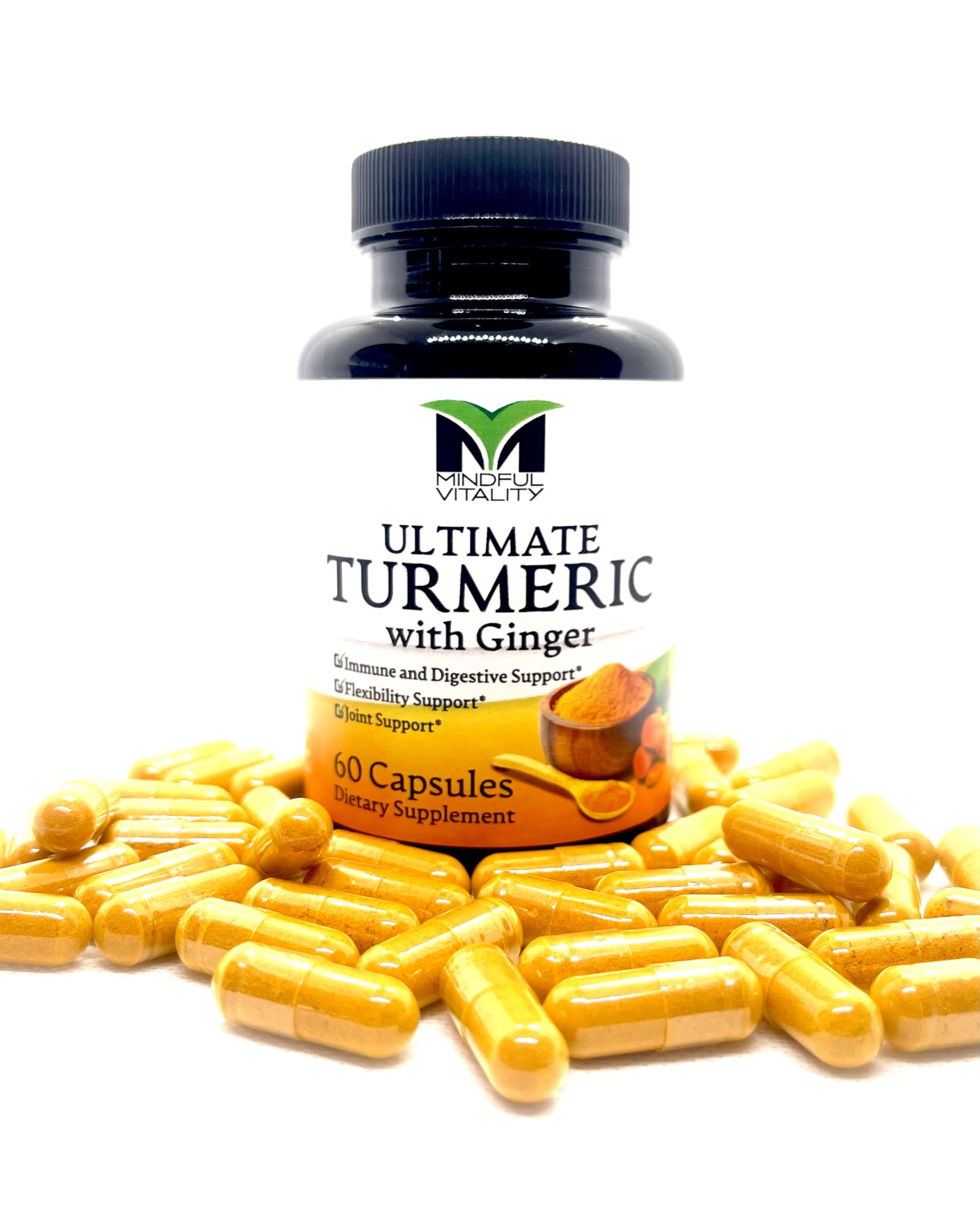 SUPPORTS HEALTHY INFLAMMATION RESPONSE AND JOINT HEALTH: Get moving. Ultimate Turmeric supports healthy inflammation response associated with physical overexertion and can also help promote joint comfort. PREMIUM INGREDIENTS: Mindful Vitality Curcumin Turmeric is vegan, gluten-free, and non-GMO. They are manufactured in the USA with high-quality ingredients from around the world in a cGMP-certified facility with third-party quality control audits. WITH ORGANIC TURMERIC ROOT: This clean formula is made from organic turmeric root and organic turmeric extract to deliver a clean curcumin supplement. SUPPORTS JOINT HEALTH: Turmeric is a common ingredient found in joint support supplements due to its phytonutrients which may promote joint comfort and flexibility. ENHANCED ABSORPTION: Curcumin by itself is poorly absorbed by the body. Our turmeric with black pepper capsules are enhanced with Bioperine, a patented black pepper extract proven to dramatically increase bioavailability. 500MG CURCUMINOIDS: Our Curcumin is made from organic turmeric root and organic turmeric extract that is standardized to deliver 95 curcuminoids, the beneficial components in turmeric. Every serving packs 500mg of curcuminoids.