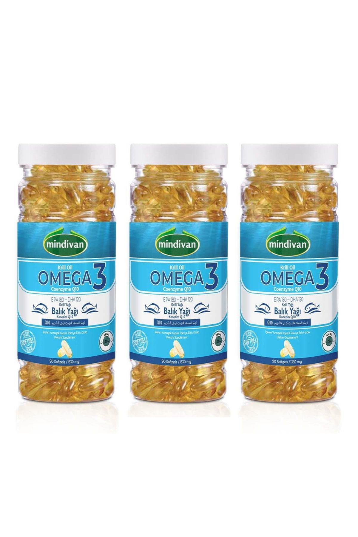 Mindivan Krill Oil Omega 3 Coenzyme Q10 1330 Mg 90 Softgels x3 Pieces