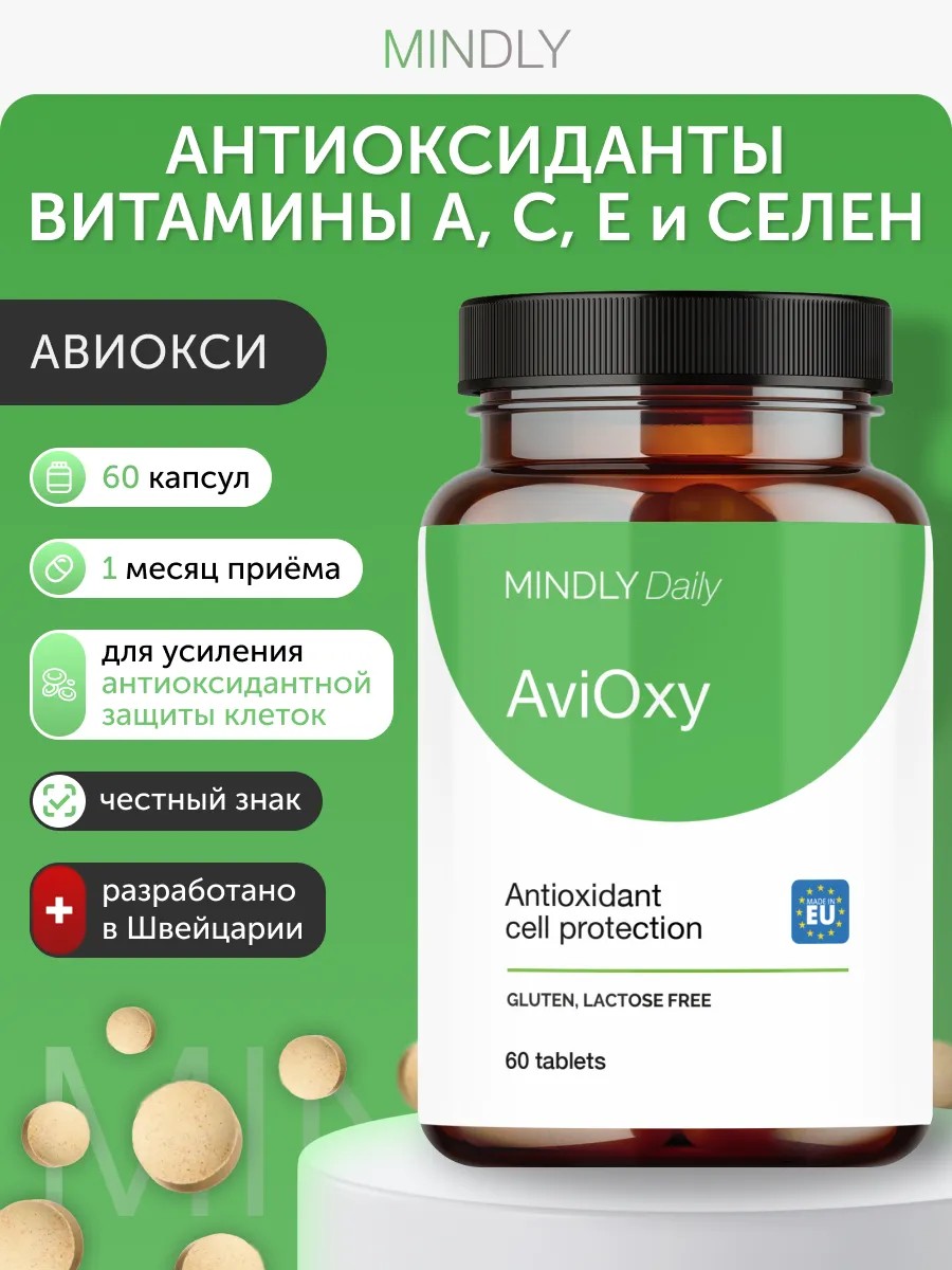 MINDLY AviOxy антиоксидантный комплекс Вит. А С E, Селен 100 мкг