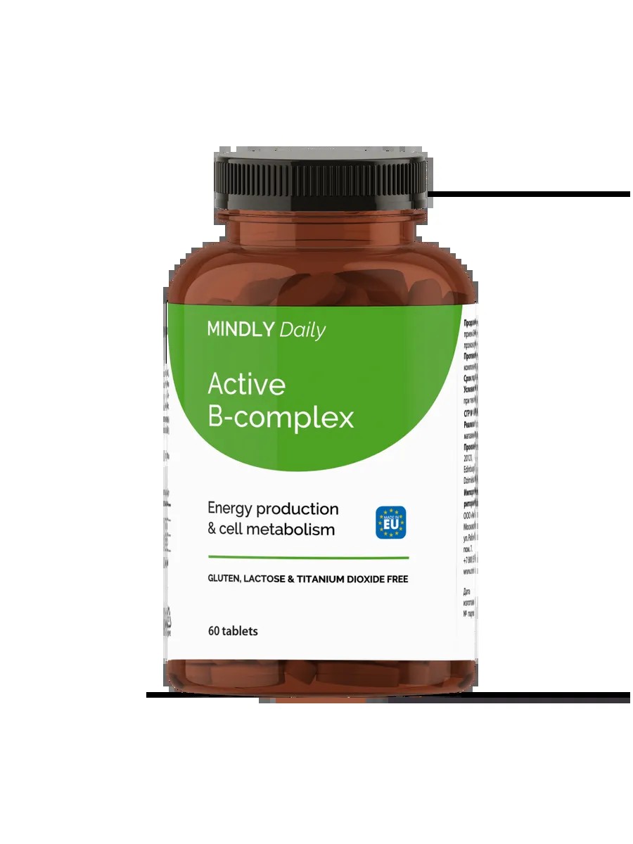MINDLY Daily Active B-Complex Витамины В6+В9+В12/Vitamins В6+В9+В12 таблетки по 300 мг 60 шт