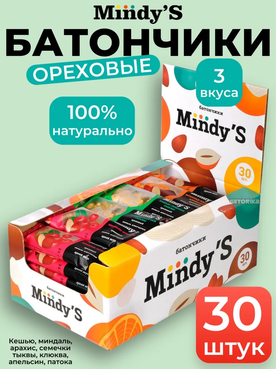 Батончик Mindy'S ореховый "Миндаль-Клюква": Арахис жареный, патока крахмальная, клюква сушеная (клюква, сахар, масло подсолнечное), ядро миндаля жареное, шарики кукурузные (кукурузная крупа, соль), масло кокосовое (рафинированное, дезодорированное), патока ржаная, растворимое пищевое волокно, клетчатка яблочная, лецитин соевый (эмульгатор).