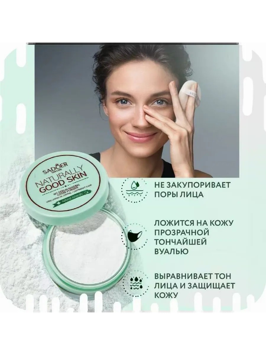 Минеральная матирующая пудра для лица Sadoer эффективно маскирует пятна и шрамы. Обладает высокой водостойкостью, не боится пота и дождя, сохраняя макияж до 8 часов.