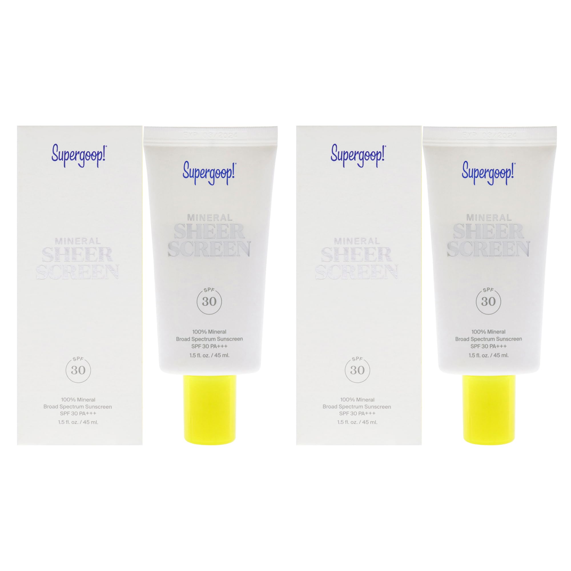 Mineral Sheer Screen SPF 30 by Supergoop for Women - 1.5 oz Sunscreen - Pack of 2