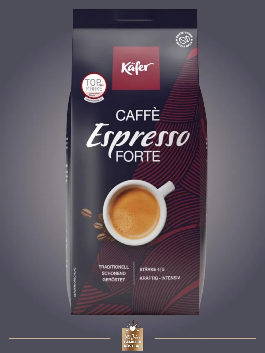 KÄFER Caffè Espresso Forte coffee beans are a perfectly balanced blend of Arabica and Robusta.