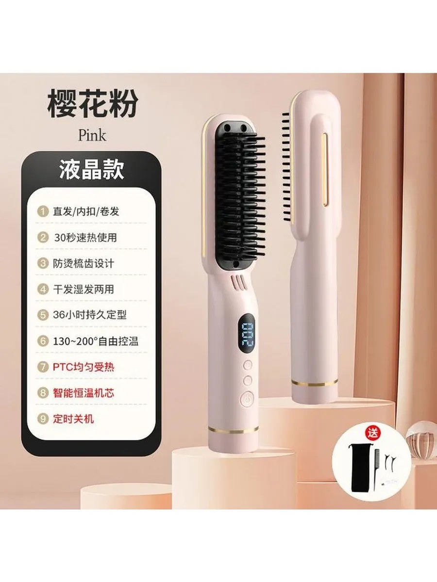 This mini ionic straightening brush is popular for its portability and effectiveness. It will become an indispensable assistant for creating the perfect hairstyle both at home and on the go. Various color options are available for selection: China Red LCD Version, Sakura Pink Button Version, Starry Gray LCD Version, Sakura Pink LCD Version, Starry Gray Button Version, China Red Button Version. Please refer to the product photo to select your desired color.