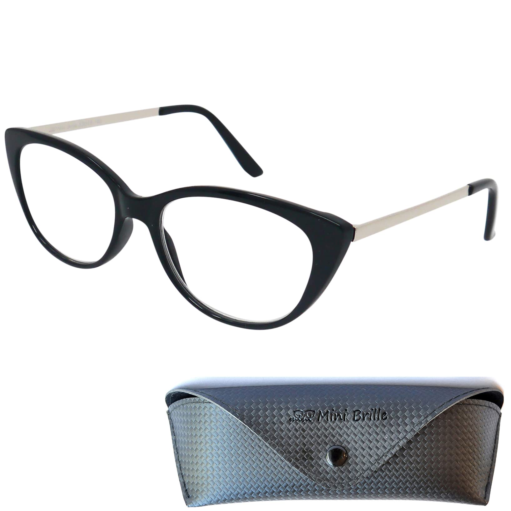 Cateye reading glasses for women from Mini glasses - a touch of sophistication for the modern woman The Cateye reading glasses of Mini glasses are much more than a simple accessory;They embody a personal style.With a design that captures both the vintage charm and modern elegance, these glasses are perfect for the contemporary woman who wants to add an unmistakable and demanding note to her appearance. Avantgardist and feminines design The decision for Cateye glasses means opting for an accessory that stands out from the crowd.Your timeless design, enriched with modern aesthetics, makes it the perfect accessory for every outfit, be it casual or formal.They are the essential accessory for women who want to combine convenience with a chic and contemporary style. Quality materials These cat eye glasses are designed for regular use and offer a perfect combination of functionality and design, without giving up comfort or your own style. Details and specifications Dimensions of the Cateye glasses.In the product images you will find all the information you need for the right decision. Outstanding comfort The ergonomic design and the lightness of the CAT EYE reading glasses guarantee maximum comfort, ideal for hours of reading.Perfect for the extensive enjoyment of your favorite books. Special care instructions Clean your glasses gently with water and mild soap and use a soft cloth to keep the clarity of the lenses. The CAT Eye reading glasses are the ideal combination of functionality, avant-garde design and absolute comfort, especially for the dynamic and style-conscious woman.etui and glasses cleaning cloth- you get a coordinated case and a microfiber cloth for on the go or in the office for your angular reading brille glasses;Ideal protection and always clear view.Modern women's style with a touch of glamor-the sophisticated CAT-Eye form of this glasses makes it an ideal accessory for fashion-conscious women who want to connect comfort with a luxury touch.Women's model with extraordinary comfort - our lightweight reading glasses not only offer an elegant look, but also excellent comfort.High-quality cat eye look for long-lasting joy-Enjoy the combination of quality and stylish design with our CAT-Eye reading glasses, equipped with premium glasses and a robust plastic frame with metal.Vintage Chic Cateye for the timeless look-Experience the perfect mix of retro and modern elegance with our CAT Eye reading glasses, which was specially developed for women to be trendy every day. CATEYE-LESEBRILLEN FÜR DAMEN VON MINI BRILLE - EIN HAUCH VON RAFFINESSE FÜR DIE MODERNE FRAU Die CATEYE-LESEBRILLEN VON MINI BRILLE sind weit mehr als ein einfaches Accessoire; sie verkörpern einen persönlichen Stil. Mit einem Design, das sowohl den Vintage-Charme als auch moderne Eleganz einfängt, sind diese Brillen perfekt für die zeitgenössische Frau, die ihrem Erscheinungsbild eine unverwechselbare und anspruchsvolle Note hinzufügen möchte. AVANTGARDISTISCHES UND FEMININES DESIGN Die Entscheidung für eine CATEYE-BRILLE bedeutet, sich für ein Accessoire zu entscheiden, das Sie von der Masse abhebt. Ihr zeitloses Design, angereichert mit einer modernen Ästhetik, macht sie zum perfekten Accessoire für jedes Outfit, sei es lässig oder formell. Sie sind das wesentliche Accessoire für Frauen, die Bequemlichkeit mit einem schicken und zeitgemäßen Stil verbinden möchten. QUALITÄT MATERIALIEN Diese KATZENAUGENBRILLEN sind für den regelmäßigen Gebrauch konzipiert und bieten eine perfekte Kombination aus Funktionalität und Design, ohne dabei auf Komfort oder den eigenen Stil zu verzichten. DETAILS UND SPEZIFIKATIONEN Abmessunger der CATEYE-BRILLEN. In den Produktbildern finden Sie alle Informationen, die Sie für die richtige Entscheidung benötigen. ÜBERRAGENDER TRAGEKOMFORT Das ergonomische Design und die Leichtigkeit der CAT EYE-LESEBRILLEN garantieren höchsten Tragekomfort, ideal für stundenlanges Lesen. Perfekt für den ausgedehnten Genuss Ihrer Lieblingsbücher. SPEZIELLE PFLEGEHINWEISE Reinigen Sie Ihre Brille schonend mit Wasser und milder Seife und verwenden Sie ein weiches Tuch, um die Klarheit der Linsen zu bewahren. Die CAT EYE-LESEBRILLEN sind die ideale Kombination aus Funktionalität, avantgardistischem Design und absolutem Komfort, speziell für die dynamische und stilbewusste Frau.ETUI UND BRILLENPUTZTUCH- Erhalten Sie zu Ihrer eckige Lesebrillebrille ein abgestimmtes Etui und ein Mikrofasertuch für unterwegs oder im Büro; idealer Schutz und stets klare Sicht. MODERNER DAMENSTIL MIT EINEM HAUCH VON GLAMOUR - Die ausgefeilte Cat-Eye-Form dieser Brille macht sie zum idealen Accessoire für modebewusste Frauen, die Komfort mit einem Touch von Luxus verbinden möchten. DAMENMODELL MIT AUSSERGEWÖHNLICHEM KOMFORT - Unsere leichtgewichtigen Lesebrillen bieten nicht nur ein elegantes Aussehen, sondern auch einen hervorragenden Tragekomfort . HOCHWERTIGE KATZENAUGENOPTIK FÜR LANGANHALTENDE FREUDE - Genießen Sie die Kombination aus Qualität und stilvollem Design mit unserer Cat-Eye-Lesebrille, ausgestattet mit Premium-Gläsern und einem robusten Kunststoffrahmenmit Metall Bügeln. VINTAGE CHIC CATEYE FÜR DEN ZEITLOSEN LOOK - Erleben Sie den perfekten Mix aus Retro und moderner Eleganz mit unserer Cat-Eye-Lesebrille, die speziell für Damen entwickelt wurde, um jeden Tag im Trend zu liegen.Mini Brille Cateye Lesebrille mit großen Gläsern, Gratis Etui, Kunststoff Brillengestell und Metall Bügeln, Lesehilfe Damen Schwarz 1.5 Dioptrien