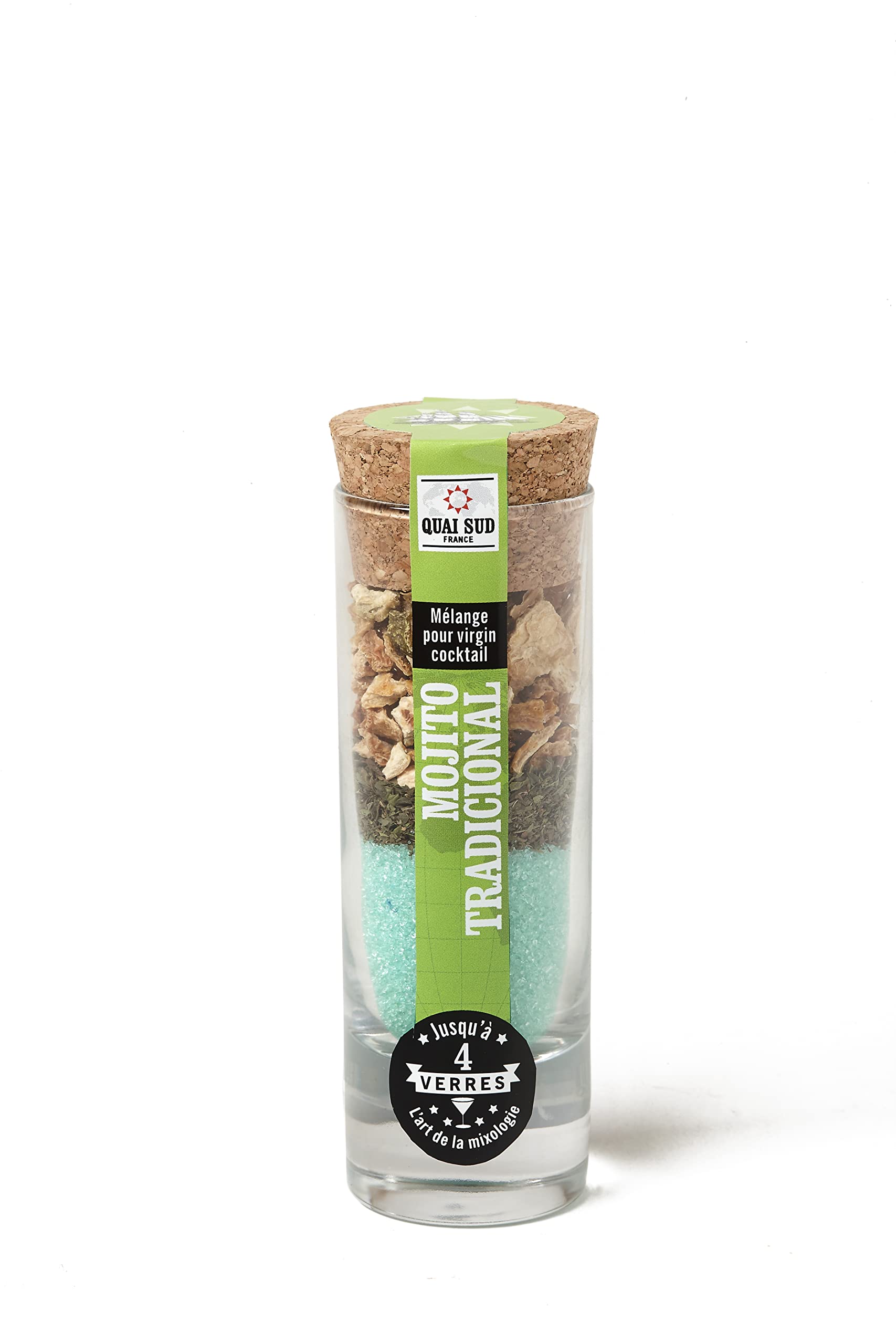 A story: Quai Sud, a French SME based in the Var region, has been crafting gourmet products for delicatessens in its workshops for many years. Focusing on people rather than machines, Quai Sud relies on French expertise to create beautiful and delicious products. Inspired by both culinary traditions from around the world and contemporary trends, its products promise a true taste journey! A commitment to quality: Quai Sud selects its raw materials based on their quality, flavor, and terroir, offering them plain or flavored. Each range is developed like a collection, keeping pace with current trends. Quai Sud is always striving for greater quality, originality, and flavor to continue surprising you! A unique and gourmet gift: Giving a Quai Sud product is a refreshing change from flowers and chocolates! Okay, we do have chocolate too… but so much more! We offer cocktail and mixology kits, preparations for fruit-infused waters, and even a pirate chest! Because our products are original and their packaging is unique, they make perfect gifts for any occasion, whether it's Christmas, Valentine's Day, or a birthday. Directions: Let it steep for 1 hour in 30 cl of white rum. Mix, strain, then add 1 liter of sparkling water. Serve with crushed ice. Drink immediately. Excessive alcohol consumption is dangerous for your health please drink responsibly. store away from light and moisture. May contain traces of nuts, sesame, mustard, gluten, milk, soy, and sulfites. Ideal for someone who loves hosting cocktail parties!Une histoire : PME française basée dans le Var, Quai Sud fabrique dans ses ateliers des produits gourmets pour épiceries fines depuis de nombreuses années. Des femmes et des hommes plutôt que des machines, Quai Sud mise sur le savoir-faire français pour élaborer des beaux et bons produits. Ses produits inspirés à la fois des traditions culinaires du monde et de l'air du temps vous promettent un vrai voyage gustatif !. Une qualité : Quai Sud sélectionne ses matières premières en fonction de leur qualité, de leur saveur, de leur terroir et les propose nature ou aromatisées. Chaque gamme est travaillée comme une collection, surfant sur les tendances. Quai Sud recherche toujours plus de qualité, d'originalité, de saveur pour continuer à vous surprendre !. Un cadeau original et gourmand : Offrir un produit Quai Sud, ça change des fleurs et des chocolats ! Bon, on a aussi du chocolat… mais tellement plus ! Des coffrets de mélanges pour cocktails ou de mixologie, des préparations pour eaux fruitées, et même un coffre de pirate ! Parce que nos produits sont originaux et leurs emballages hors du commun, ce sont des cadeaux parfaits, à offrir en toute occasion, pour Noël, la Saint-Valentin ou un anniversaire. Conseils d'utilisation : Laissez macérer 1 h dans 30 cl de rhum blanc. Mélangez, filtrez puis ajoutez 1 l d'eau gazeuse. Servez avec de la glace pilée. Consommer sans attendre. L'abus d'alcool est dangereux pour la santé, à consommer avec modération. Conserver à l'abri de la lumière et de l'humidité. Traces possibles de fruits à coques, sésame, moutarde, gluten, lait, soja, sulfites. Idéal pour une personne qui aime organiser des soirées cocktails !.Mini mélange pour mojito