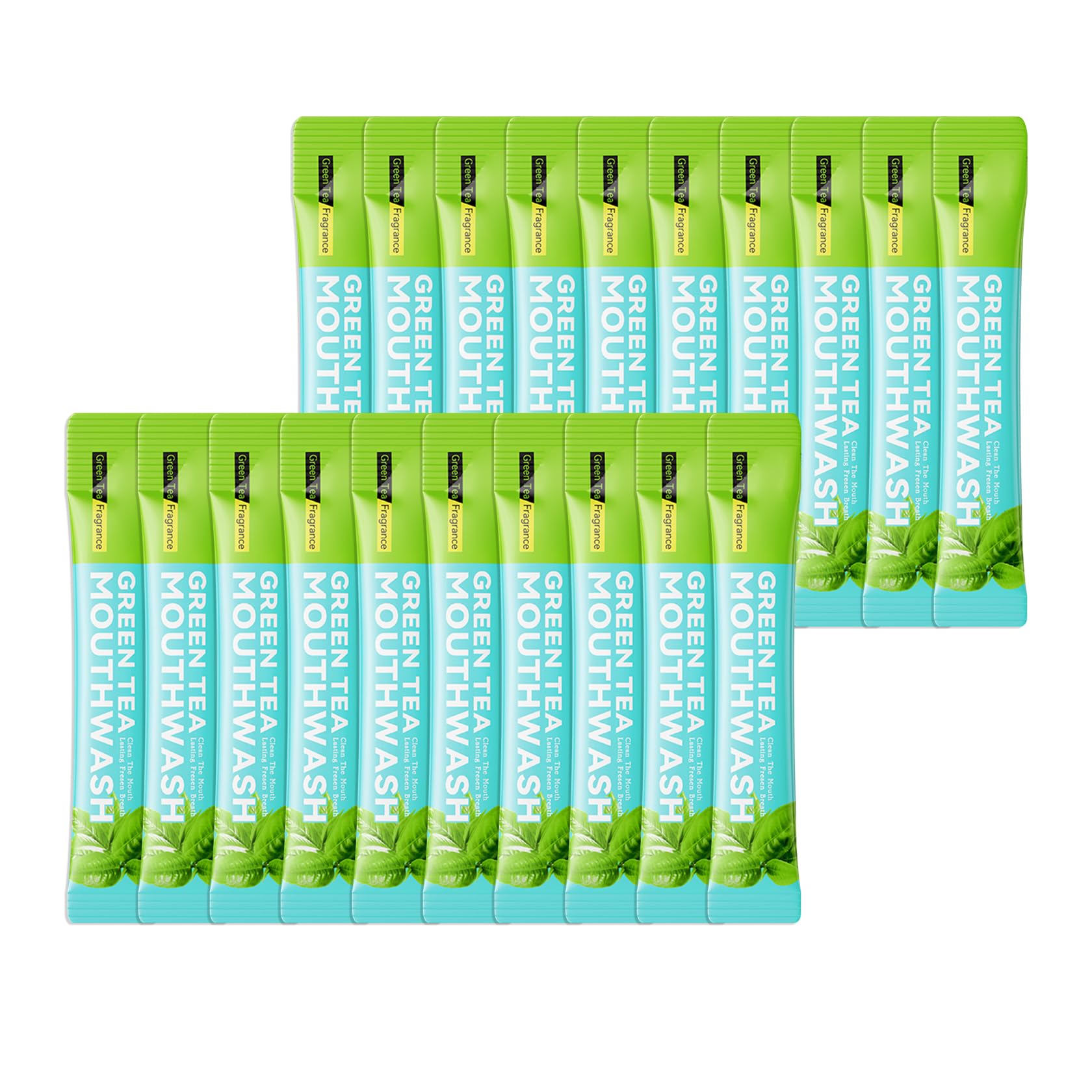 Mini Mouthwash Kit Travel Size Portable Fresh Breath Mouth Wash Green Tea Flavor 20 Individual Disposable Mouthwash Packs for Oral Care