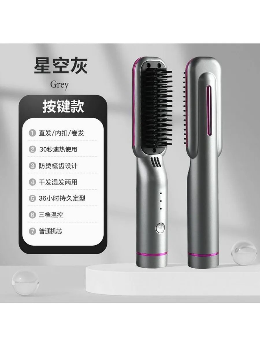 Мини-расческа выпрямитель-Звездный серый кнопка