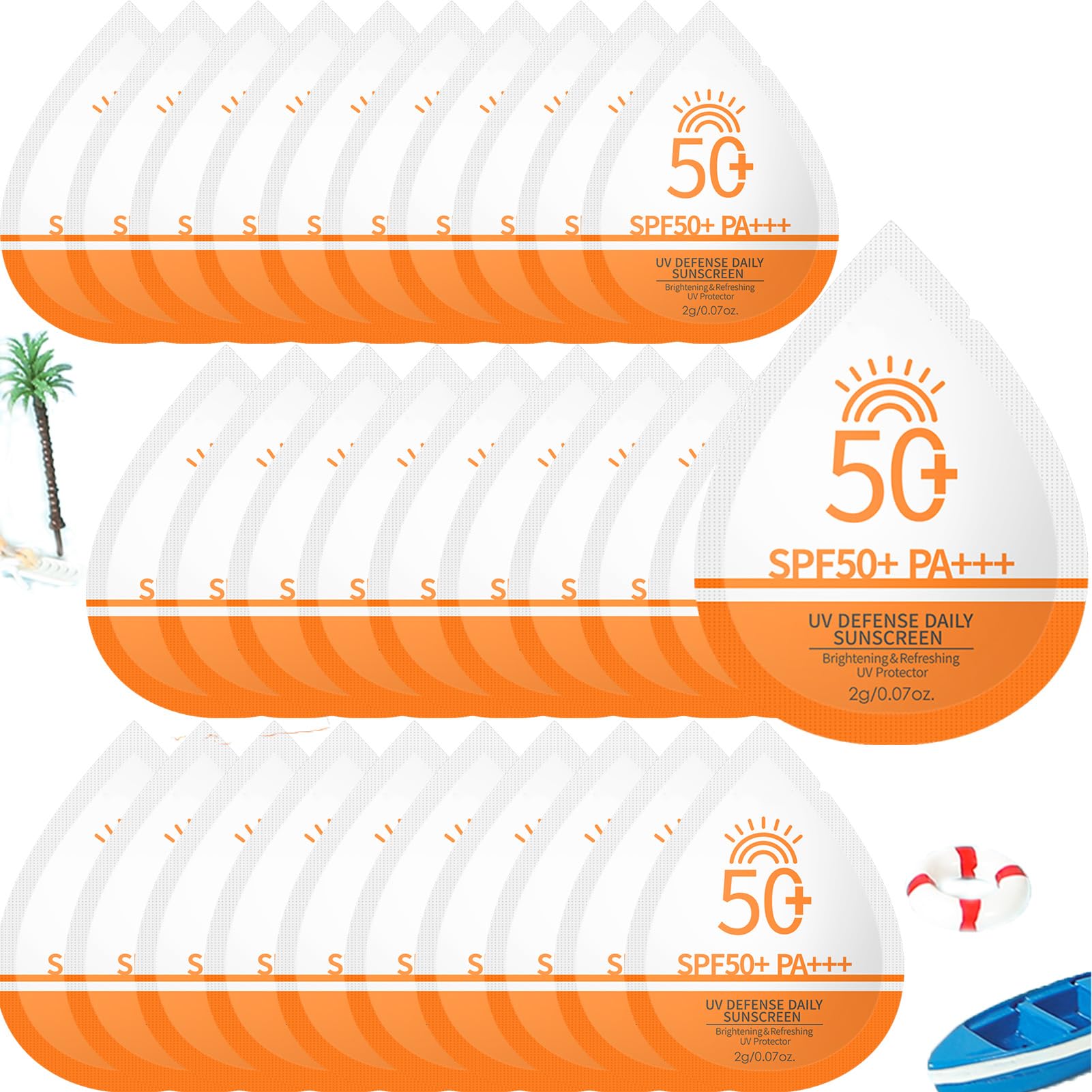 Mini Outdoor Sports Set: Mini single-use packaging, suitable for all skin types, convenient to carry, and worry-free, making it ideal for travel, outdoor activities, dinners, spas, birthday parties, and other occasions. Perfect for daily use or intense sun exposure. Waterproof and Sweatproof: Lightweight and non-greasy, no white cast, it quickly forms a protective film after application. It won't clog pores, making it an ideal choice for daily sun protection. Hydrating Lightweight: Small sunscreen travel size lightweight texture, easy to apply, and absorbs quickly, leaving skin feeling refreshed and non-greasy. Travel Size Suntan Lotion: This travel-size sunscreen has an SPF50 , providing strong UV protection while nourishing the skin, Easily provide a barrier for your skin during various outdoor activities. Sunscreen Packets: Mini sunscreen product package contains 50 individually, hygienic and convenient to use, a thoughtful beauty product for travel.