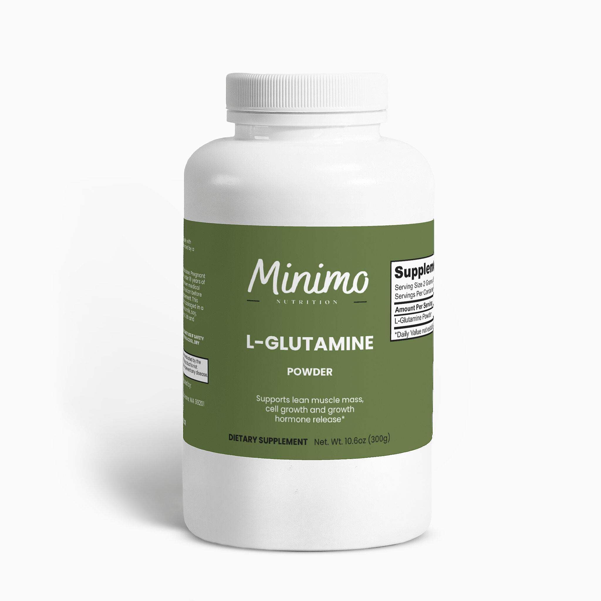 Minimo Nutrition is committed to providing clean supplements that contain no seed oils, artificial sweeteners, artificial flavors, GMOs, or added sugar. Suggested Use: 1 serving 1 to 3 times daily with a beverage of choice or as directed by a healthcare professional. Ingredients: L-Glutamine. Supports Lean Muscle Growth, Provides Energy to the Body, Boosts the Immune System, and Improves Intestinal Health . High-Quality L-Glutamine Powder - Vegetarian, No Fillers, Non-GMO, Vegan, and Sugar Free!.