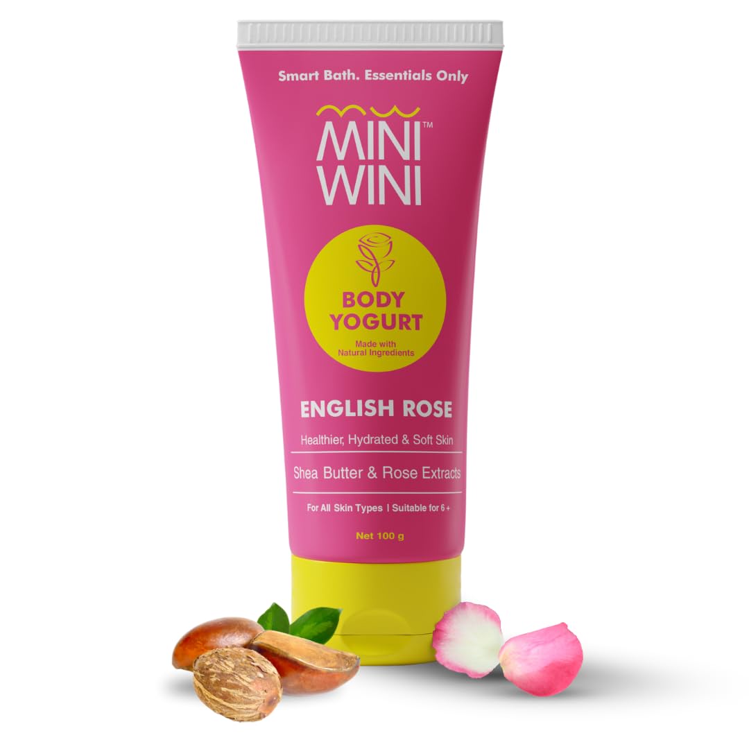 MiniWini Body Lotion Yogurt English Rose 100g | Shea Butter | Soft & Moisturised Skin | Herbal | Lightweight Non-Greasy | All Skin Types | Paraben-Free | Vegan