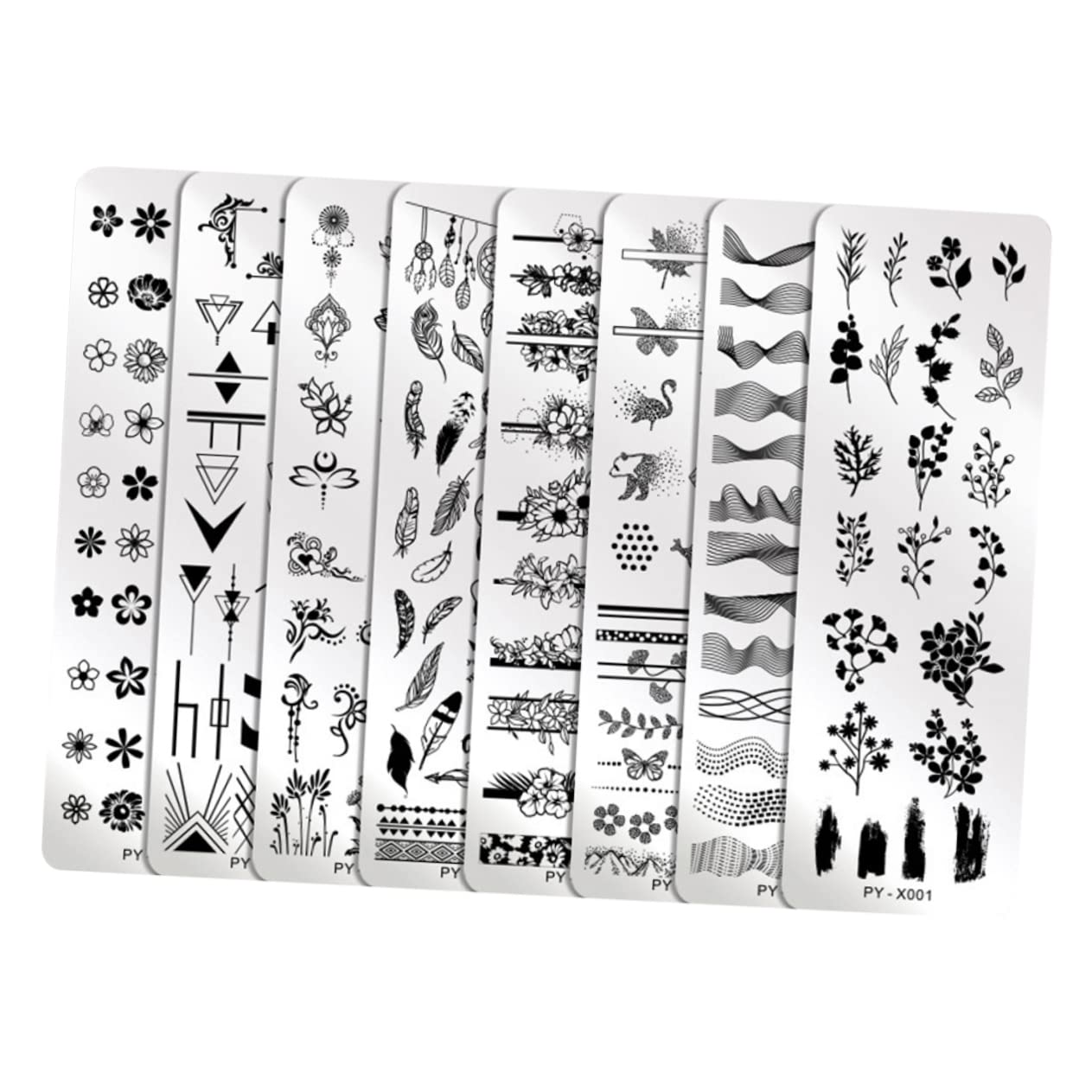 Package Include 1 Pack/8pcs x Nail Art Printed Boards Characteristics - Color: Silver DIY Nail Stamp Kit. - Material: Stainless Steel nail art stamping template. - Size: 12x4x0.1cm/4.7x1.5x0.04 inch nail stamping kit. - This product is small, light, and easy to carry, so you can take it with you wherever you go. - This product can be given as a for your friends and families. They will be very happy Nail Stamping Template. - Made of material, it is and lasting use. You can safe to use it nail art template. - Create a nail art and then enjoy your party time! You will enjoy your nail art time Nail Art Plates. - Enjoy the nail art on your own at home easily or make unique and beautiful art nail together with your friends nail polish stamper. Goods Information nail stamp templates It makes your nails look elegance and special.Nail Art Plates It is designed for both beginners and experienced nail artists.nail stamper kit Create delicate nail art on your own at home easily.nail stamp kit It is suitable for party or fashionable look.nail stamping kit Now enjoy a better nail art experience here! This is a piece of stamping plate with various patterns which can helps you to create unique nail art work and allows you to share fun with your friends DIRECTIONS keep clean SAFETY WARNING 1 See more