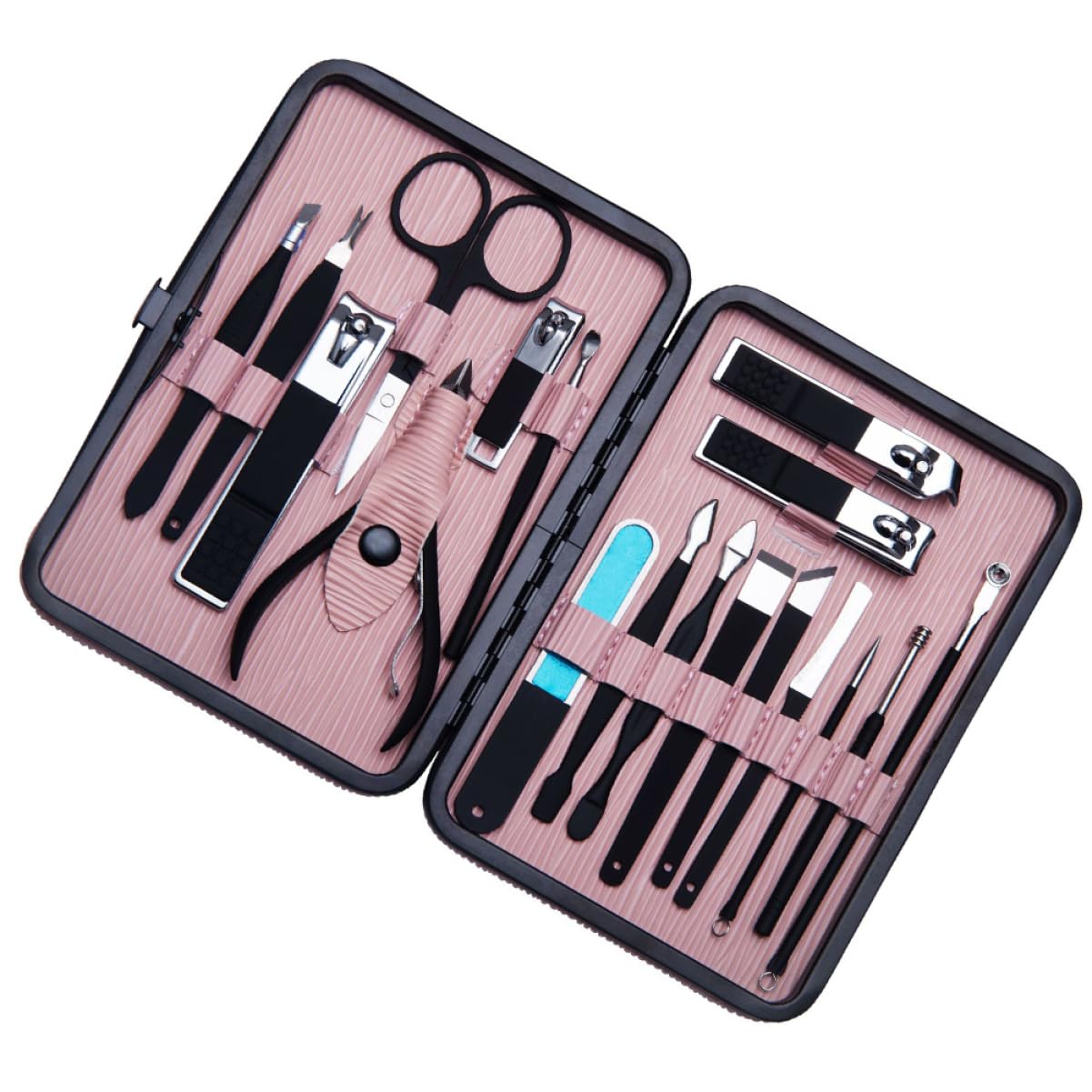 Package Include 1 x set of 18pcs manicure tools Features - Color: Pink manicure pedicure kit - Size: About 8.00X3.00X1.00cm/3.14X1.18X0 nail nippers professional. - Material: Stainless Steel nail clippers - Quick, easily shape and clean your nails. Make your nails beautiful and clean nails gel. - Made of premium stainless steel with exquisite workmanship, sturdy and durable professional nail clippers. - A set of tools trimming fingernails and toenails Nail Manicure Set. - Suitable for home or professional pedicure use, which is your families nail kit set. - This manicure set covered everything you need for professional nail care manicure set. Goods Information stainless steel nail clippers A set of nail trimming tools, made of stainless steel, exquisite workmanship, durable.nail gel These perfectly nail trimming set is professional for you choose.nail Nail trimming tools are a great help in your daily life.Professional Nail Clippers Kit You'll get your money's worth with this manicure tool