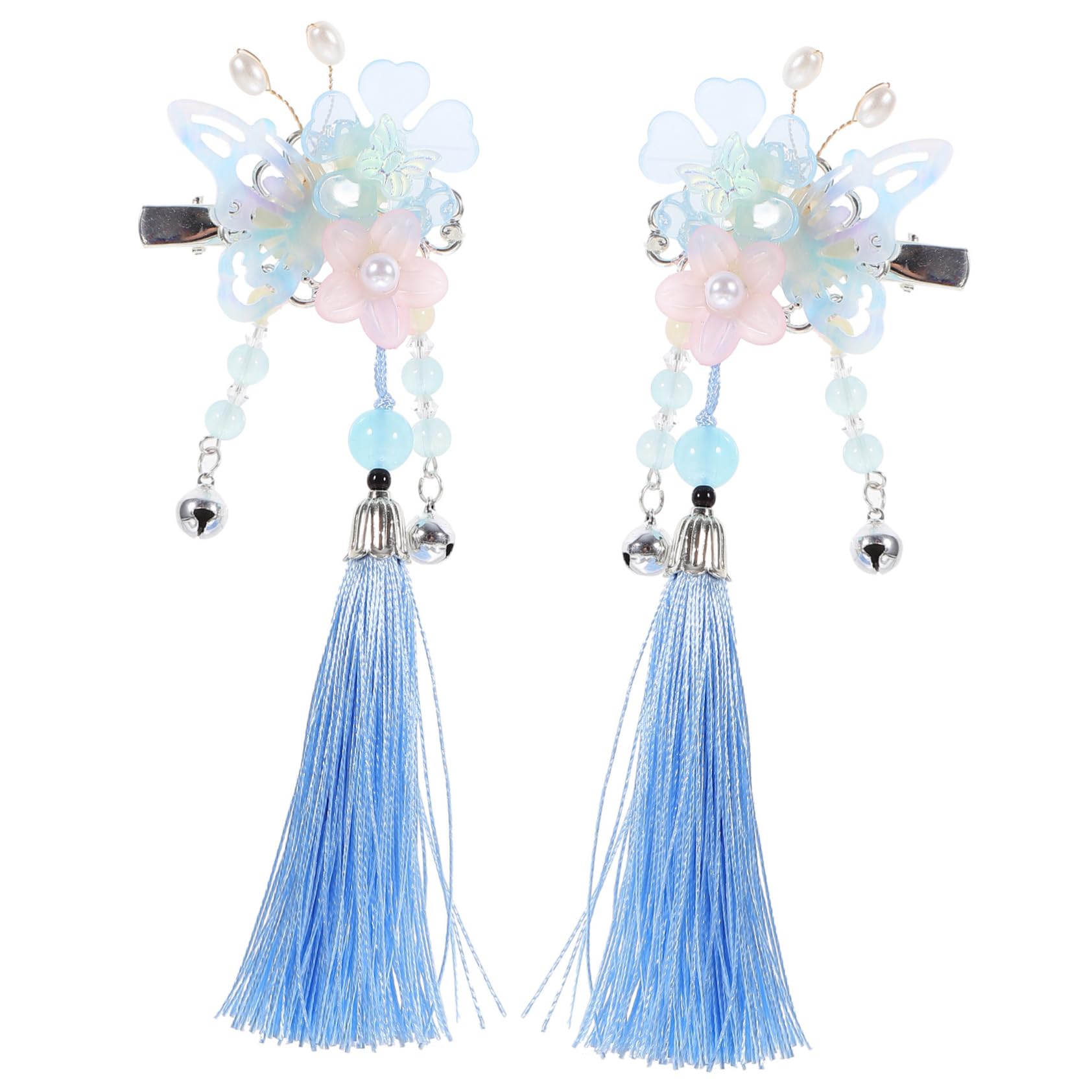 minkissy 1 Pair Butterfly Hair Clip Tassel Hair Clips Hair Barrettes for Women Thick Hair Barrettes for Women Thin Hair Chinese Wedding Hair Pin Japanese Hair Pin Nylon Pearl Miss Headgear