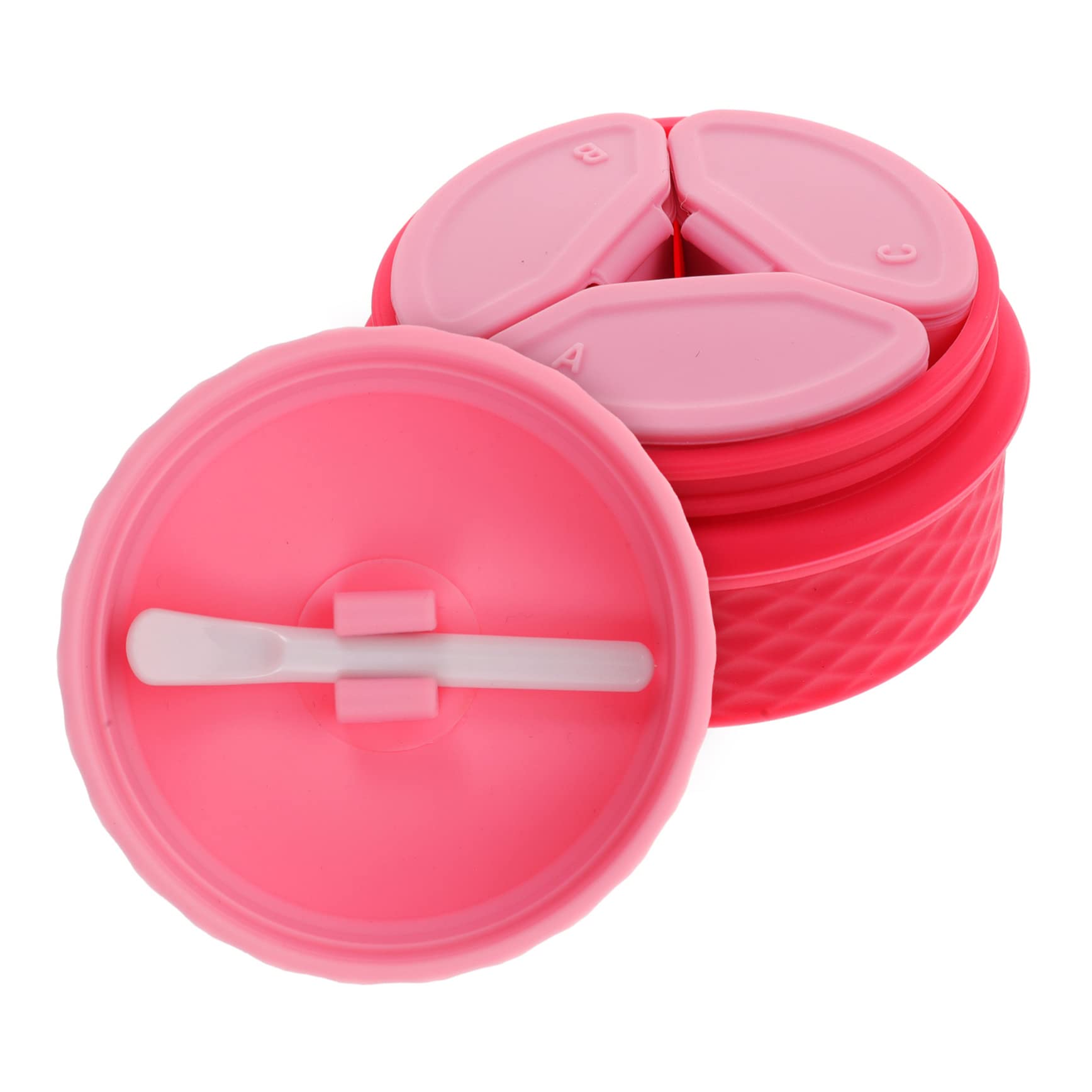Package List 1 x large box 3 x small boxes 1 x spoon Features -Color:Pink durable cream storage jar -Material:Silicone travel container for cream -Size:6.50X6.50X4.50cm/2.55X2.55X1 portable cosmetic holder. -This Cream Container will be the addition to your toiletry bag, very convenient to use makeup cream jar. travel cream jar -The appropriate size is packing cosmetics in your toiletry case or bag without having to carry the whole bottle toiletry bottle. -Small and lovely, and this Lip Balm Container is a must-have accessory for travel and daily life, very practical lotion storage jar. -This Cream Empty Box is equipped with spoon, you can grip the things inside easier and classify the pills refillable cosmetic container. -Fine workmanship ensures the and reliable storage effect, practical to use makeup set. Goods Information massage lotion It will bring some convenience to your life.makeup containers Simple bottle can be used to store various items, such as ointments, lotions, creams, balsams, , etc.leakproof travel containers You can use this storage bottle to hold creams and other cosmetics.small cream container With its compact shape design, it looks very chic.cosmetic jar with spoon This item is a cosmetics Cream Sub Bottle, which is made of reliable material, very durable and can withstand long-lasting useLotion storage jar-- the cream empty box adopts the reusable design, the service life is long, practical and reliable. Lotion dispenser jar-- as a travel bottle, you can separate a variety of creams, such as face cream, eye cream, care products, etc., with the three small compartment jars. Cream jar-- small and lovely, and this lip balm container is a must-have accessory for travel and daily life, very practical. Cosmetic jar with lid-- cream jar with sealed lid refillable cream jars spiral bottle mouth design, rigorous technology, good sealing. features in simple structure, famous for practical. Small lip balm container-- this cream empty box is equipped with spoon, you can grip the things inside easier and classify the pills.