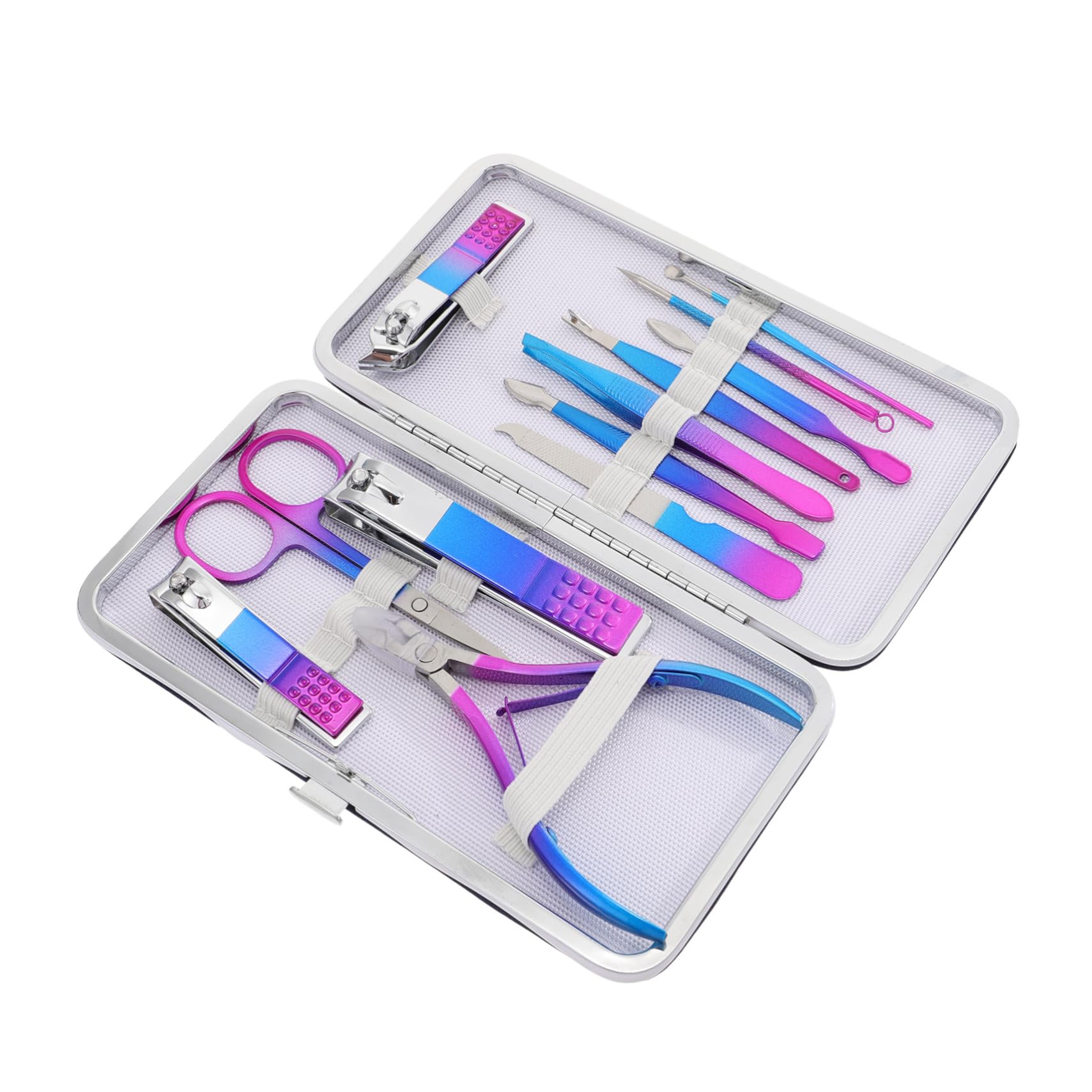 Package Include 1 x Big flat mouth nail clipper 1 x Flat nail scissor 1 x Oblique nail clipper 1 x Eyebrow scissor 1 x Eyebrow clip 1 x Nail file 1 x 1 x Ear pick 2 x Dead skin push 1 x 1 x Dead skin pliers Features - Size: About 15.50X8.50X1.50cm/ 6.09X3.34X0.59inch Nail Manicure Set. - Color: Colorful Nail . - Material: Stainless steel, PU Travel Manicure Kit. - Complete tools to meet daily maintenance needs Pedicure Kit. - Compact size, portable and lightweight, simple and easy to carry Manicure Grooming Tool. - Suitable for polishing your nails and clean the ail edges Pedicure Care Tools. - Can be for your nails directly, durable and serving time Manicure Tool. - Applicable for professional nail experts and nail art learners nail polishing tools. Goods Information Nail You can carry them in your bag every day or when you travel.Manicure Tool Are you looking for a set of professional, yet manicure supplies? Are you in search of a set of sturdy, trustworthy manicure tools that can be for a time? If yes, look no further! These products must meet your needs