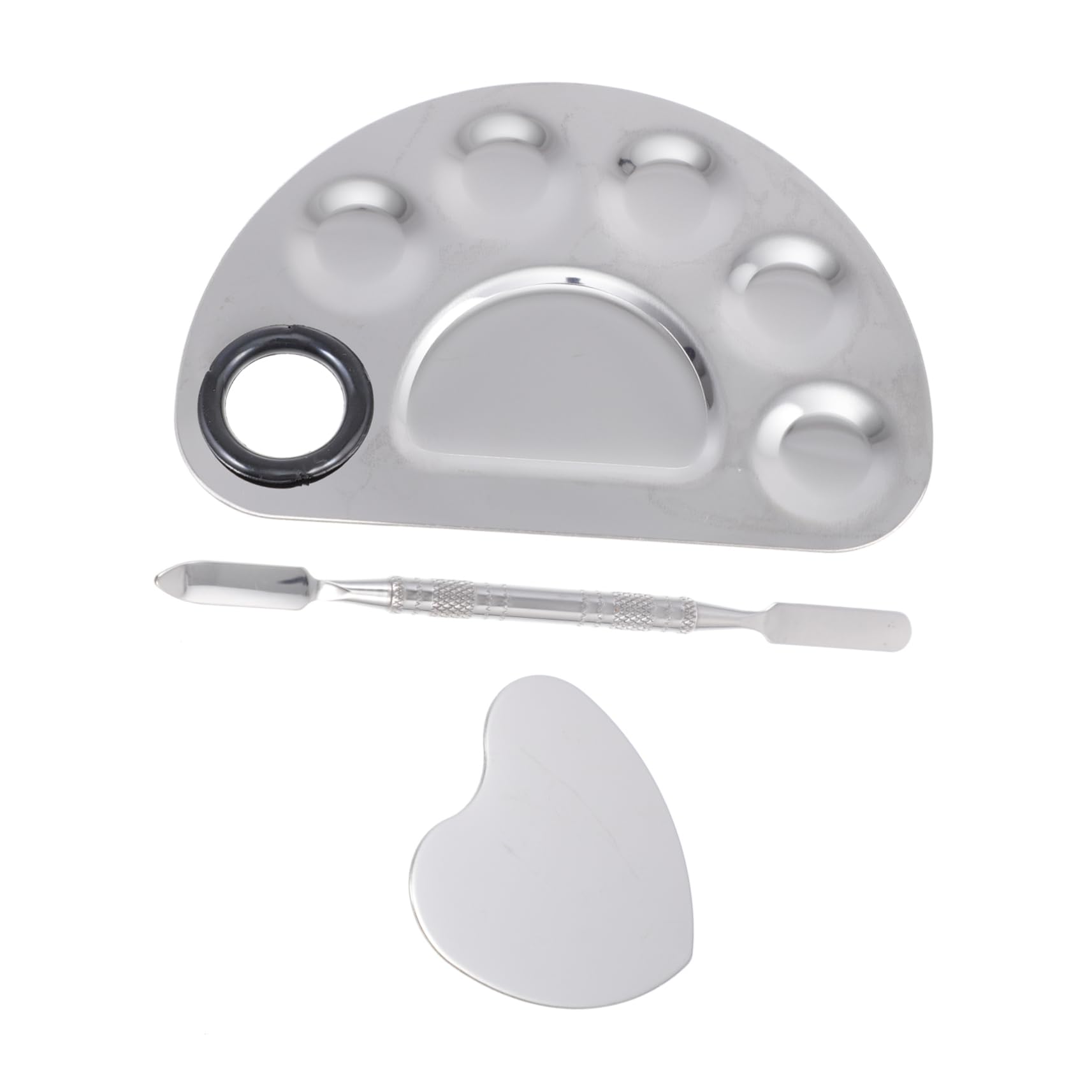 minkissy 1 Set Palette Nail Paint Display Boards Nail Paint Mixing Boards Salon Manicure Paint Boards Make-up Color Mixing Plates Nail Art Paint Boards Stainless Steel Make up Drawing Board 12.5X9.5X1.5CM Silver