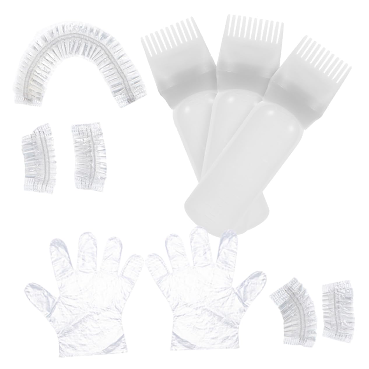 Package List 3 x 2 x gloves 1 x hair cap 4 x ear muffs Features - Color: White hair kit - Size: 6.90X4.80X4.80cm/2.71X1.89X1 oil for hair. -Material:plastic hair salon supplies - Satisfy your need to try any hairstyle, give a clean, neat and easy hair dyeing and coloring experience hair bleaching kit for dark hair. - The hair oil applicator is flexible to make sure smooth applications of dye color hair dying set. - You can give this tools set as a for your friends or family, give them a little surprise hair oil bottle. - Complete tools, enough for providing you a professional hairdressing experience salon hair dyeing tool. - Our hair dye coloring tools are made of good material, safe and durable for use hair . Goods Description hair dying accessory kit You can use them for a spa, highlights, etc.hair oil applicator Let your hair dye , you can dye your own desired color at home with ease.hair coloring set Enough products give you a no mess, no hassle hair dyeing experience.hair dying set Our hair dye coloring set suits for very age group DIRECTIONS keep clean