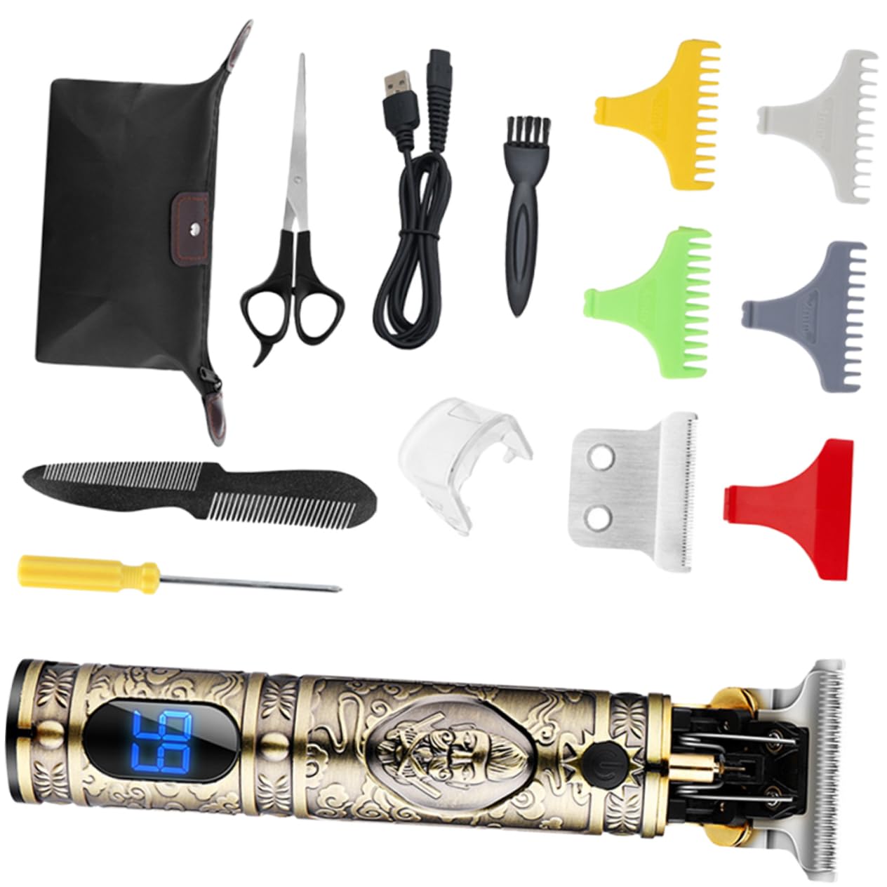 Package List 1 x clipping 4 x combs 1 x spare 1 cover 1 x scissors 1 x comb 1 x screwdriver 1 x storage bag 1 x cleaning brush 1 x USB charging cable 1 x protective cover 1 x manual Features Power: 10W clippers -Size:15.30X4.10X4.10cm/6.01X1.61X1 clippers. -Color:As Shown beard edgers for men Charging time: 2 hours clippers for cutting -Material: Stainless steel cordless clippers for men Battery: 3 edgers clippers for men. - Stainless steel suspension bracket, blocking debris, will not block your eye of sight clippers for men professional. Working time 180 minutes beard trimmer for men - Carving design clipper body, comfortable hand feeling and nonslip in use trimmer for men. - Acute cutting, clipping your fast without jamming debris mens trimmer. - LCD display screen making it more visible of instant battery status professional trimmer. - Every detail is carefully crafted, so you experience the high durability and practicality beard trimmer for men professional. Goods Information mens clippers The trimmer is convenient and practical, with excellent texture, and without being easily damaged.clippers for cutting This is a very practical trimmer.cordless clippers The exquisite craftsmanship can serve you well without breaking easily