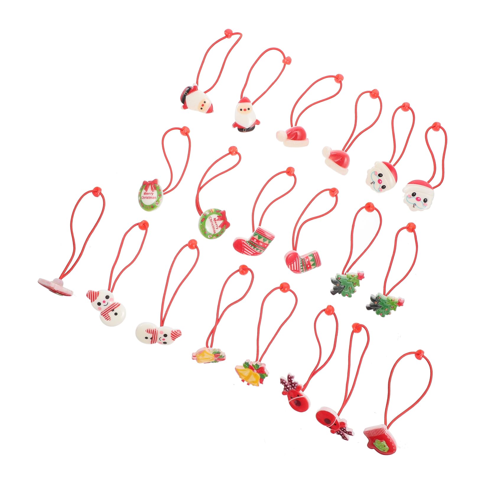 Package Include 10 x pairs of hair ties Features -Material: ABS, Elastic Rope Hair Bands -Size: 10.50X2.50X2.00cm/4.13X0.98X0 hair tie holder. -Color: Random Color Girls Hair Ropes -It well expresses the sweet atmosphere of Christmas, you can enjoy the fun of party christmas tree hair ties. -Easily wrap 's hair 3 rounds to tie it well, holding the thick hair please use 2 or more hair ties Hair Ties. -The Christmas hair band can wear separately or match with your Xmas hairpin to show your beauty Ponytail Holder. -These hair ties are comfortable for wearing, you can enjoy the feeling to style your ponytail head, hair bun elastics hair ties. -These hair tie is manufactured for your lady girl, perfectly fit girl's fine and thin hair scrunchy hair bands. Goods Description christmas hair band Lightweight, portable, you can carry it with you everyday for a long time, and you will not feel uncomfortable with it.hair tie holder Are you looking for helpful and useful hair bands? These hair ties have simple design, but you can use it to match with all your clothes, enough quantity in the package, you can give them to your girls as a