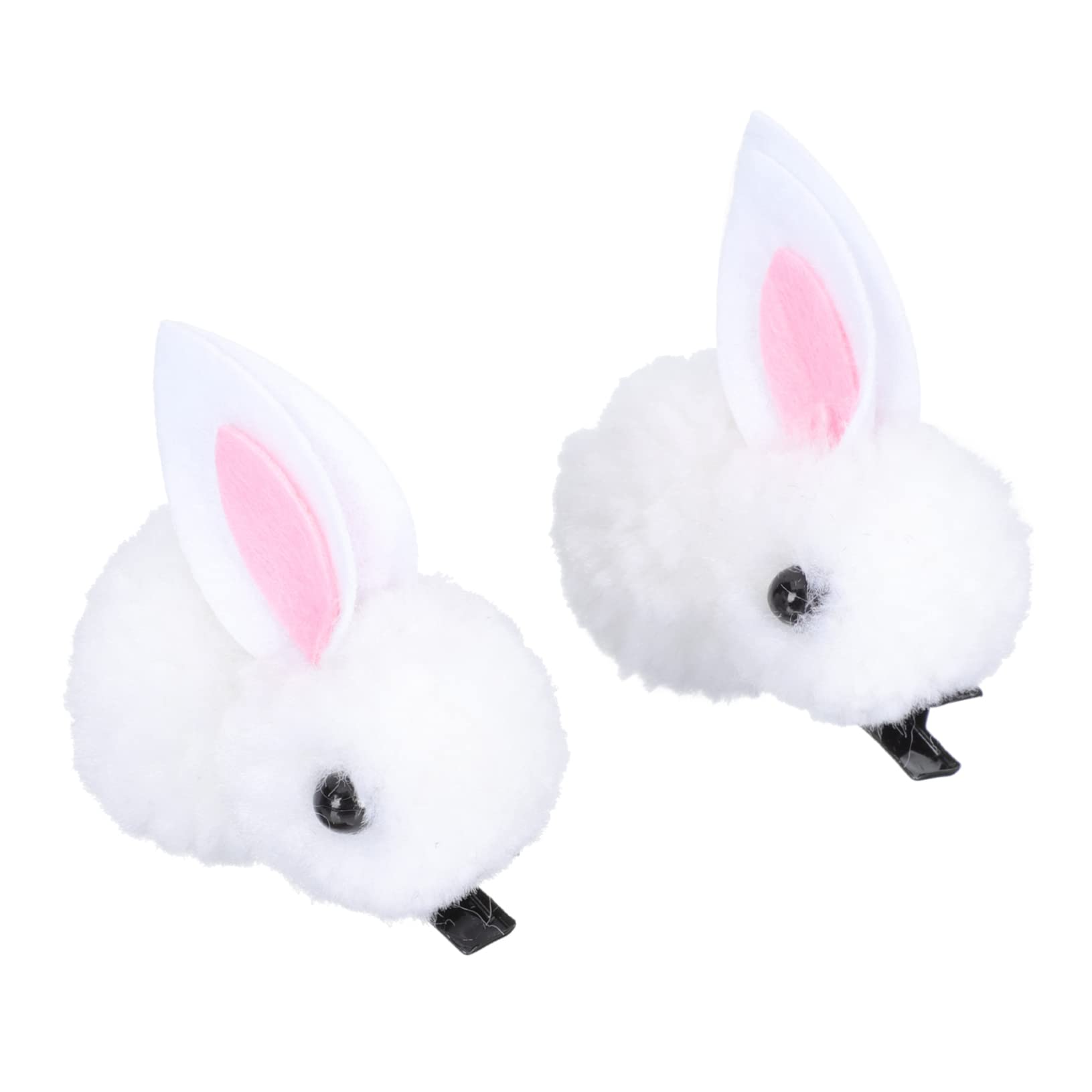 minkissy 1pair Plush Rabbit Hairpin Cat Hair Clip Bunny Hair Clip Easter Bunny Hair Clips for Girls Cartoon Hair Grasp Hair Grip Glitter Hair Clips Ear Accessories Child White
