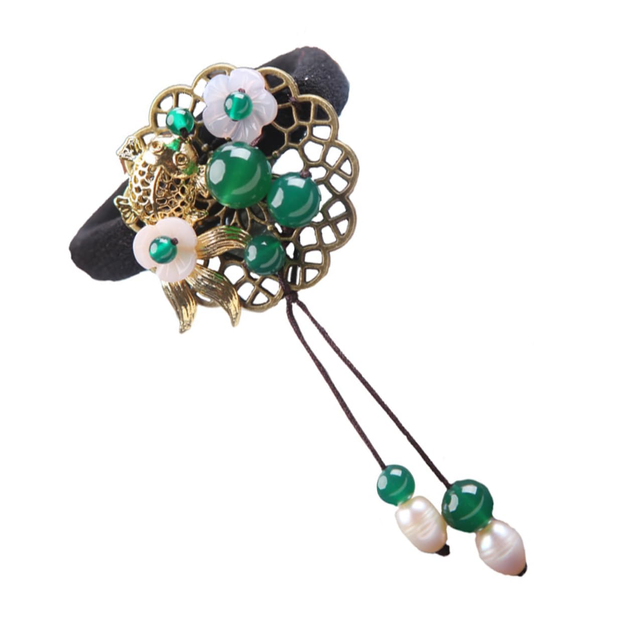 ribbon elastics: decorated with green agate, pearl, copper goldfish, beautiful and exquisite. Hanfu headdress: ?full of elasticity, it does not entangle or hurt the hair.?. Elastic hair rope: elastic hair rope is suitable for any of any thickness, which is practical and durable. Pearl ponytail holder: the elastic rope is and comfortable, which will not hurt your hair. Hair tie ponytail holders: it can easily match with your any outfits, especially your chinese han costume.