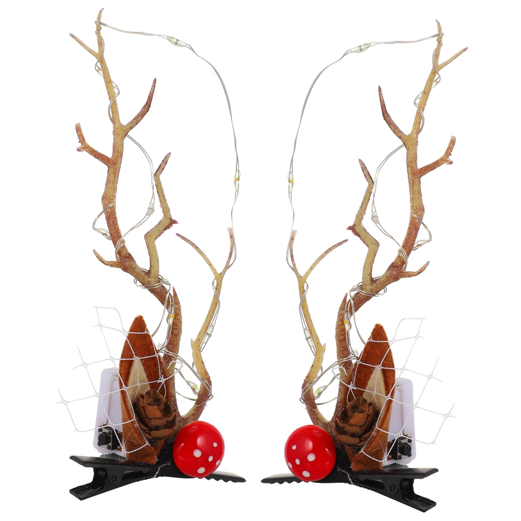 minkissy 2 Pairs Luminous Antler Hair Clip Reindeer Ears Clips Christmas Hair Antlers Clips Xmas Deer Antler Hair Barrettes Reindeer Antlers Xmas Hairpins Summer Non-woven Fabric Ear Clip