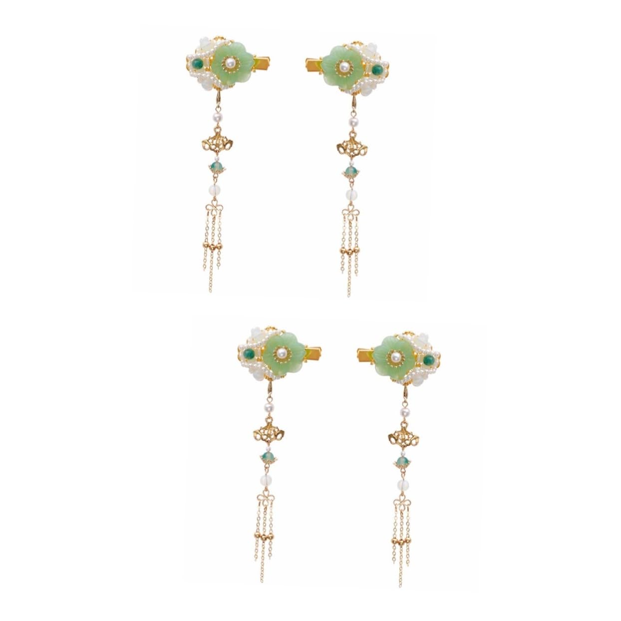 Package Include 2 x Pair of Tassel Hairpin Characteristics -Color: Green Flower Hair Clip. -Material: Pearl chinese hair stick. -Size: 12.50X6.00X1.00cm/4.91X2.36X0.39inch Jade Pearl Barrettes. - The beautiful and elegant appearance can be matched with your different outfits, making you more attractive chinese tassel hair clip. - Strong Chinese style design, unique and lovely Chinese hair tassel clip. - Suitable for any hairstyle and daily use hair clip for hair. - Let you wear more attractive on different occasions bride hair clip. - Made of materials, easy to hold, and can fix hair well crystal hair pins. Goods Description antique chinese hair pins It expresses your love to them.pearl hair pin It is an for your loved ones, such as, lover, girlfriend, fiancee, wife, mother, couple, etc.wedding hair clip This a Chinese traditional hair clip, it will make you grace and elegant on any occasions.Bride Hairpins And suitable for the ladies in any occasions, such as Wedding, Birthday, Valentine's Day, Anniversary etc DIRECTIONS keep cleanTraditional barrette: chinese tassel hair clip hanfu hair clip a timeless style that boasts decorative elegance. Wedding headpiece for bride: - elegant temperament, gorgeous and dignified, feminine and gentle. Hanfu hairpin: elegant appearance can match with your different dress- ups, make you more attractive. Asian hair accessories: classical and feminine design, full of oriental charm, capture the joy of the heart, reflecting the charm of women. Jade pearl hair clip: vintage hair clips side hair clip once wearing it, you will be the center in the crowd.