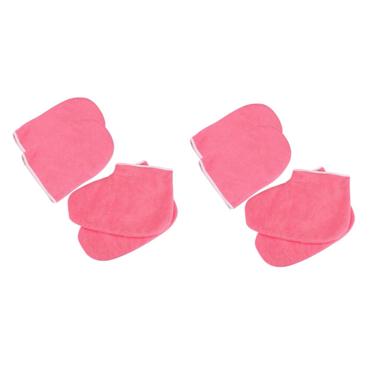 Package List 2 Pairs x socks 2 Pairs x gloves Features - Material: Cotton paraffin glove. - Packing Size: About 22x30x1cm wax bath foot hand cover. - Color: Watermelon Red. - Easy to get on wax socks. - Help maximize moisture get into the skin for a good effect wax foot cover. - Suitable for professional salon paraffin wax both spa or home use paraffin wax foot cover. - Great to use with professional feet / hand plastic paraffin accessories. - Keep the wax warm on your feet / hands after doing the paraffin dip. Goods Information paraffin glove Keep the wax warm on your feet / hands warm after doing the paraffin dip to help maximize moisture absorption into the skin for a a good effect.Wax Bath Hand Treatment Mitts Convenient and easy to get on .nail tech accessories material, to use