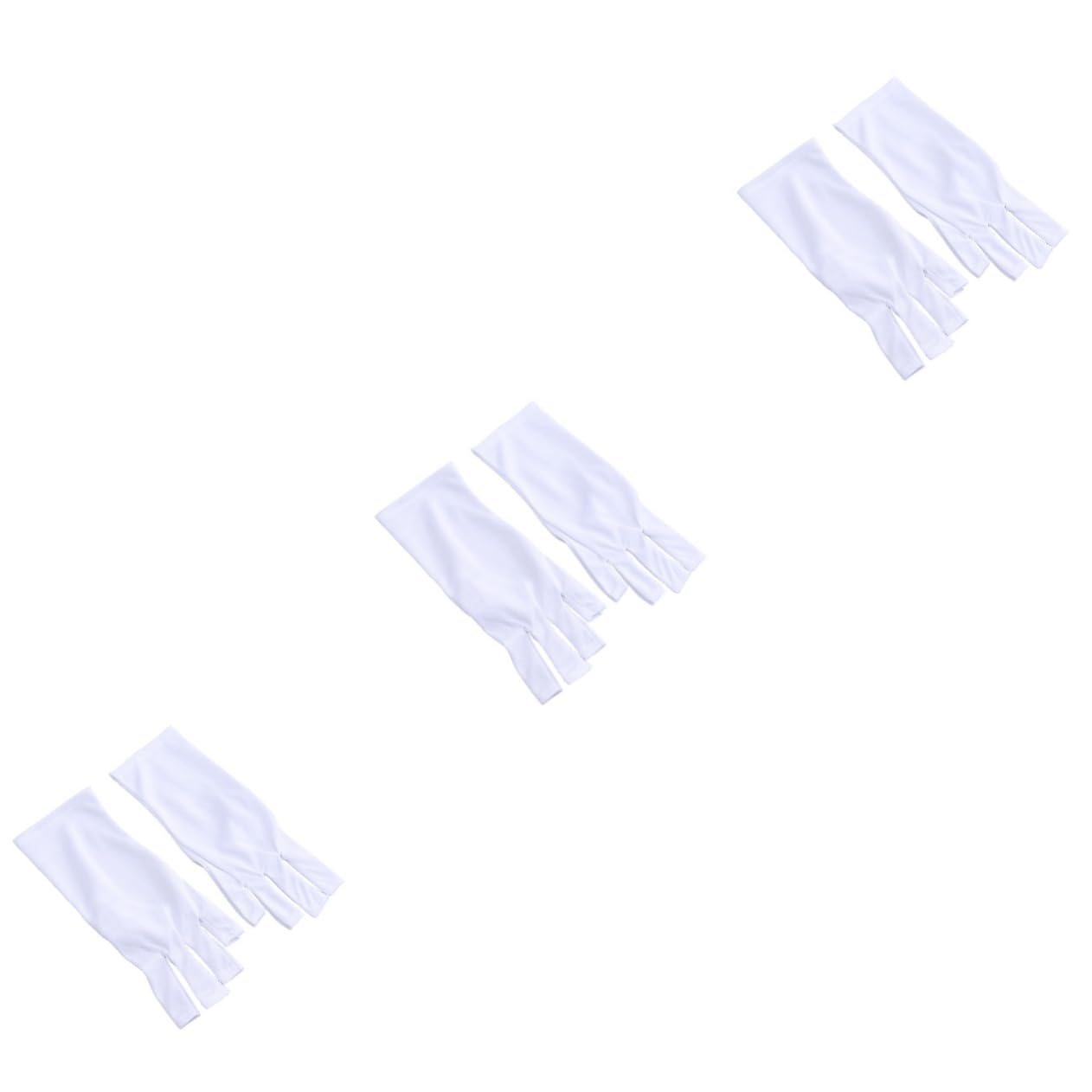 Package List 3 x pair of gloves Features - Color:White half-finger gloves. - Size: Approx. 23.5x9.5x0.5cm glove. - Material: cotton. - Warm Tip: Dear buyer, due to lighting effect, monitor's brightness, manual measurement, etc., there could be some slight differences in the color and size between the photo and the actual item. Sincerely hope that you can understand! Thank you! - Protect your skin when you do the gel nail manicure glove. - - gloves protect your hands from rays during gel treatments shield glove. - The - gloves are great for your girlfriend or mother nail . - The gloves are made of and lightweight material built for great comfort and elasticity. - Individually stitched fingers for flexibility, interlocking seam for durability. Goods Description cotton glove This pair of gloves can protect your skin when you do the gel nail.manicure glove Protects your fingers from and .manicure gloves Also can be used as outdoor activities glove, like sports, cycling and so on.nail With this glove, you can show your beauty and protect yourselves