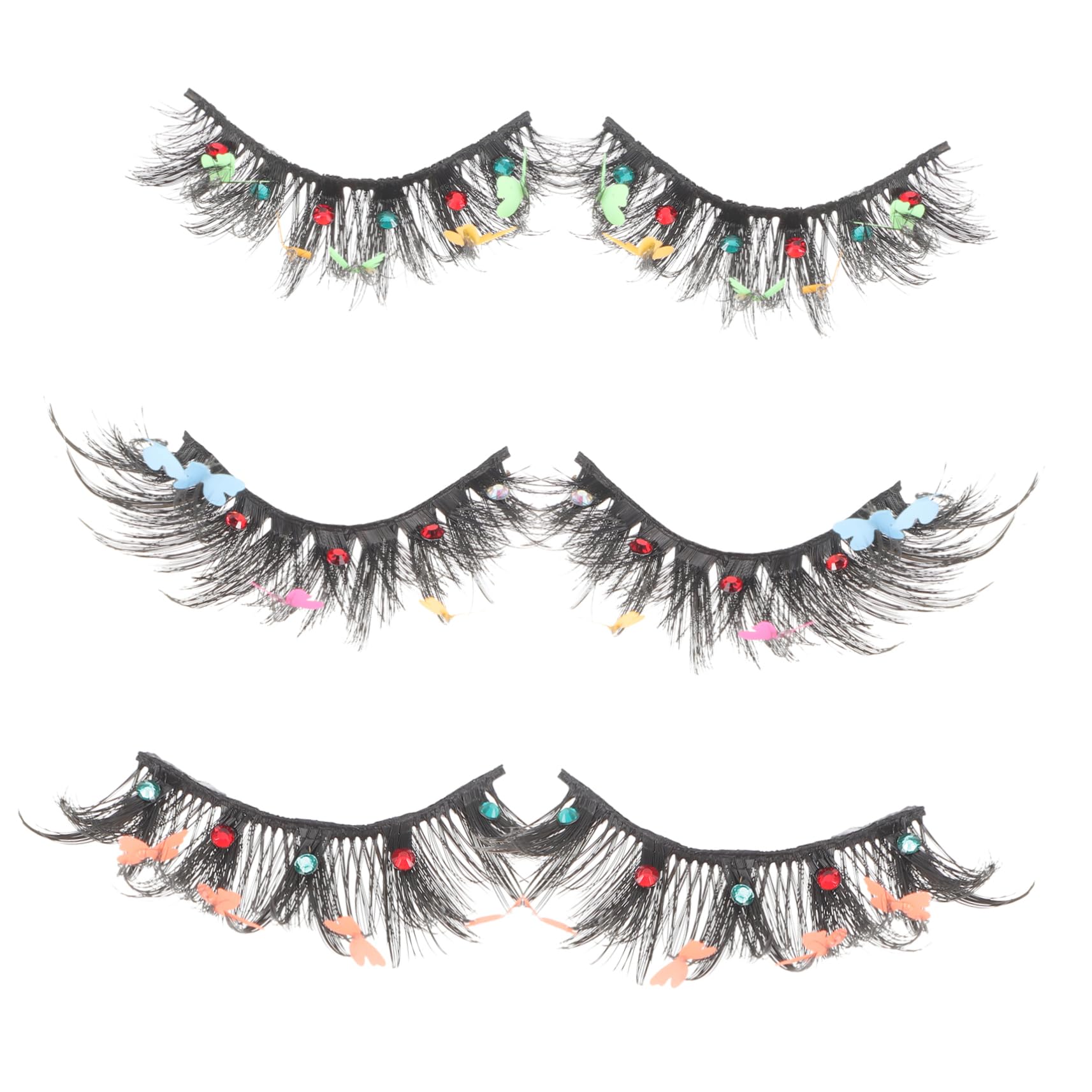 Package Include 3 pairs x fake eyelashes Features -Size:4.50X1.50X0.40cm/1.77X0.59X0 natural false eyelashes. -Color:Assorted Color false eyelashes -Material:Synthetic